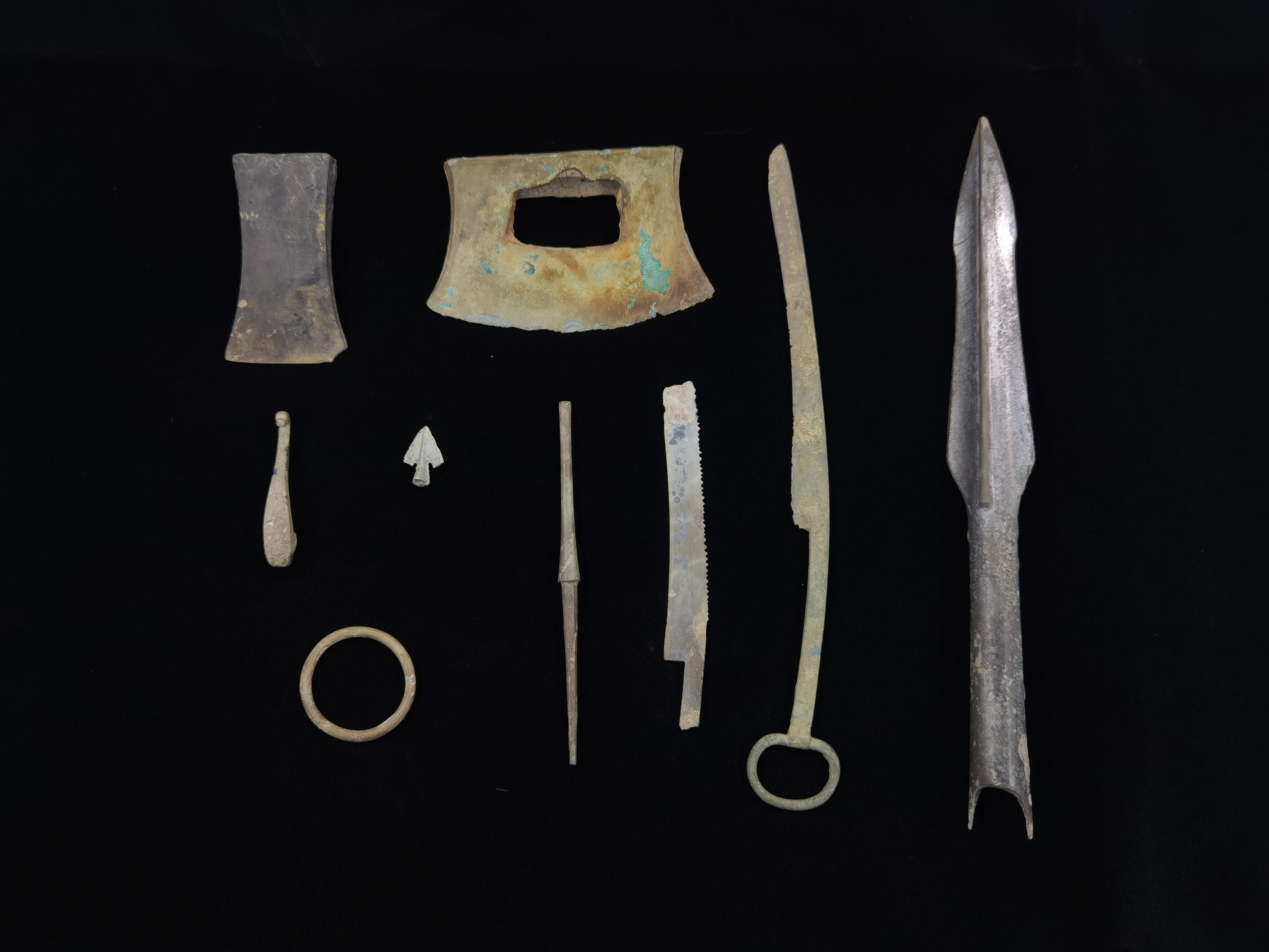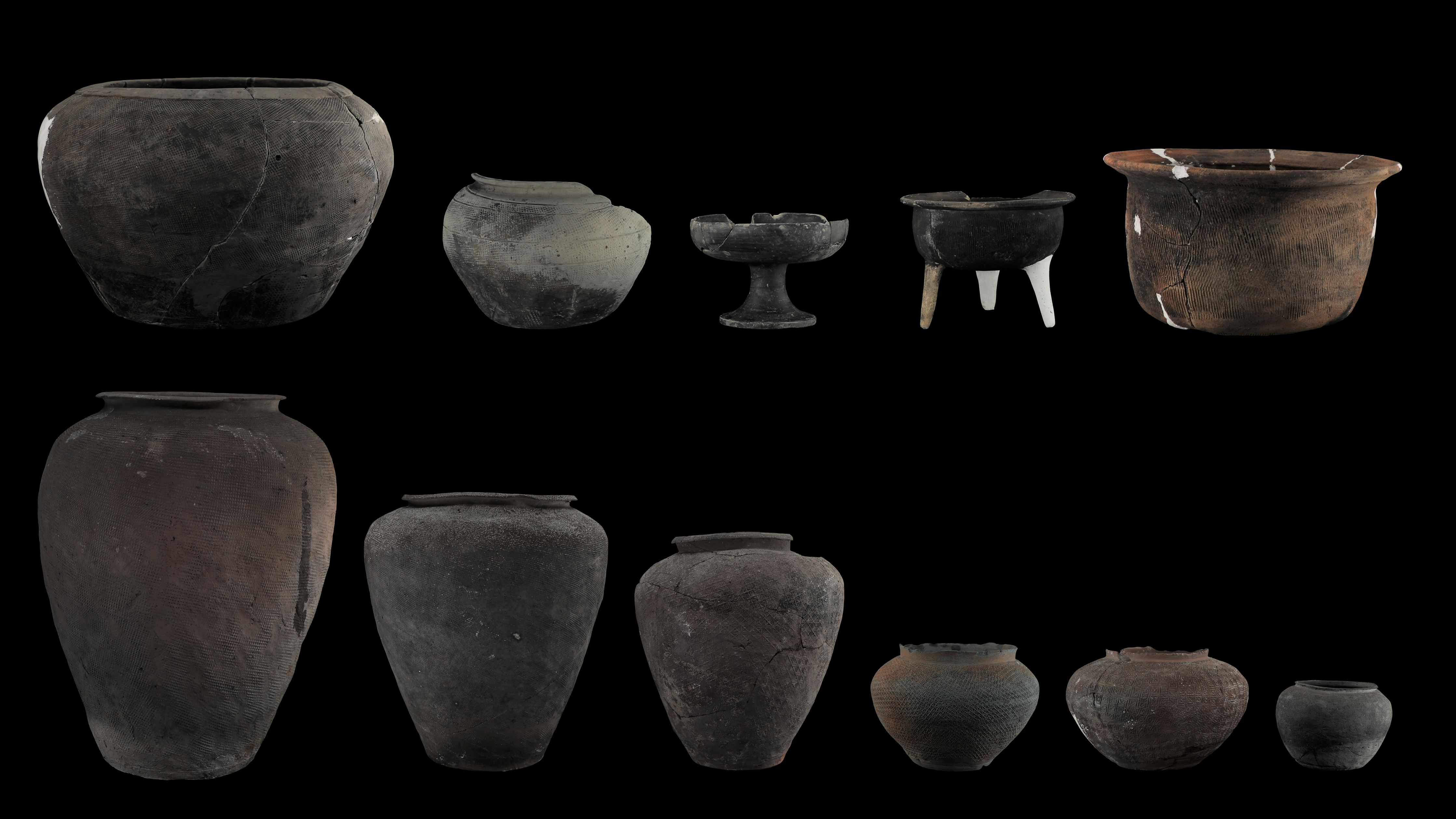 据省文物考古研究所大湖头遗址考古发掘项目负责人游晓蕾介绍,大湖头遗址的主体文化堆积为春秋战国时期,是典型的越文化遗址。这里向人们展现的是一幅2000多年前水乡泽国的生活图景。经过浮选,考古人员发现了稻米、水稻颖壳和大量水稻小穗轴,这表明,稻米是当地居民的主食。考古发掘发现,遗址里有甜瓜、李、梅、桃等多种水果遗存,还有许多日常生活用器,主要炊器有夹砂陶鼎、釜(甗),泥质陶甑等;盛器有泥质陶盆、豆、罐,各式各样的原始瓷碗、杯,大小不一的印纹硬陶坛、罐,还有编织的篮筐等。