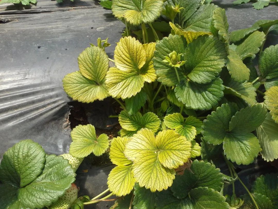 上面是缺乏肥料导致草莓的叶子发黄,需要及时补充薄肥。