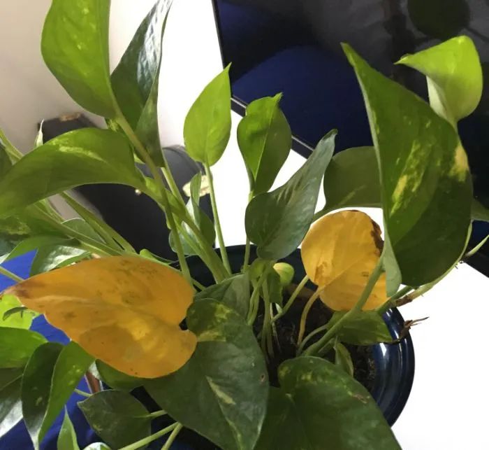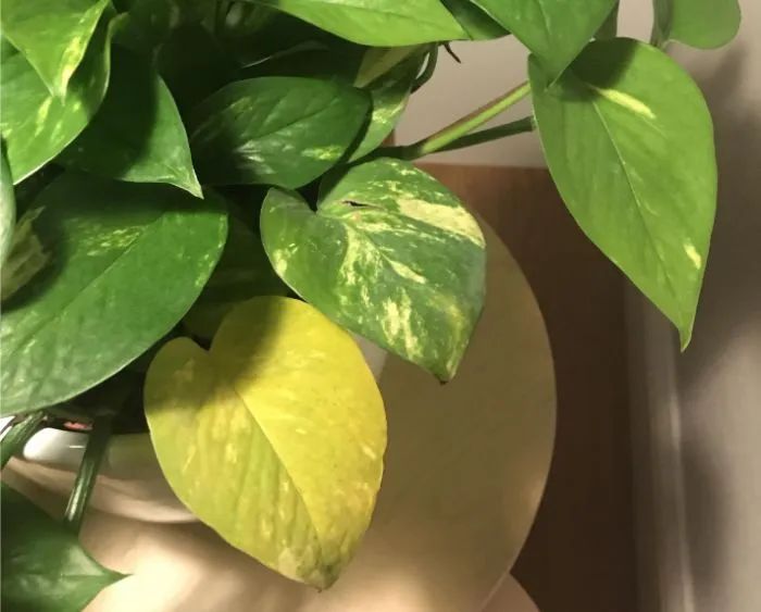 这种情况也是室内植物最常发生的,室内养护的环境如果过度遮阴,长时间得不到光照,环境过度阴暗,就会导致叶子的颜色变得黯淡无光,植株容易徒长,叶子就长的特别娇嫩,刚长出来的嫩叶就会有泛黄的情况。