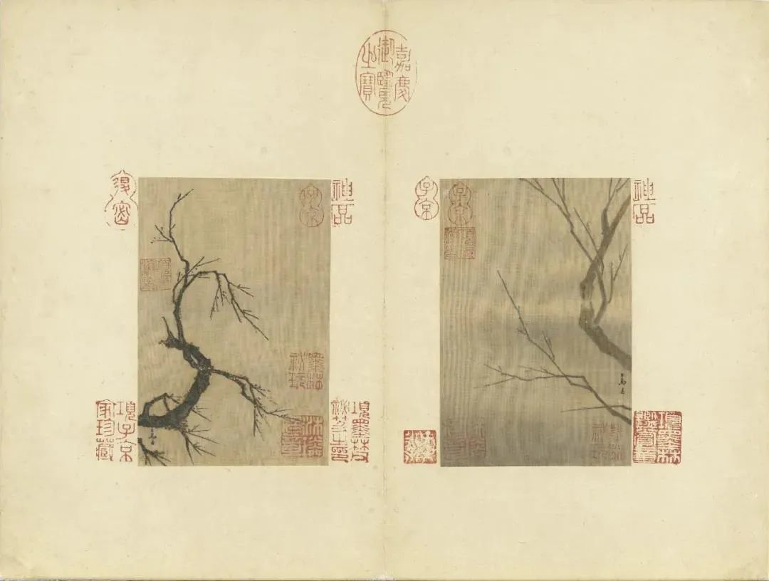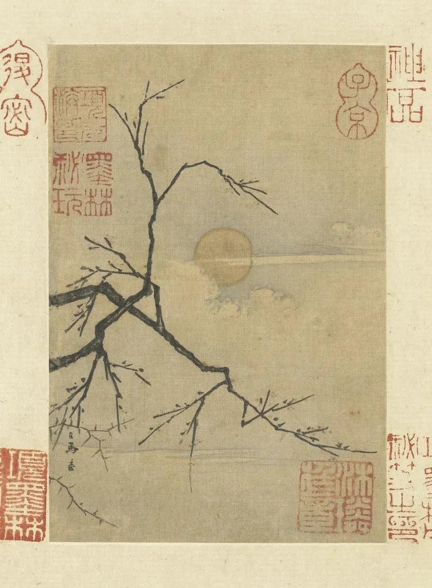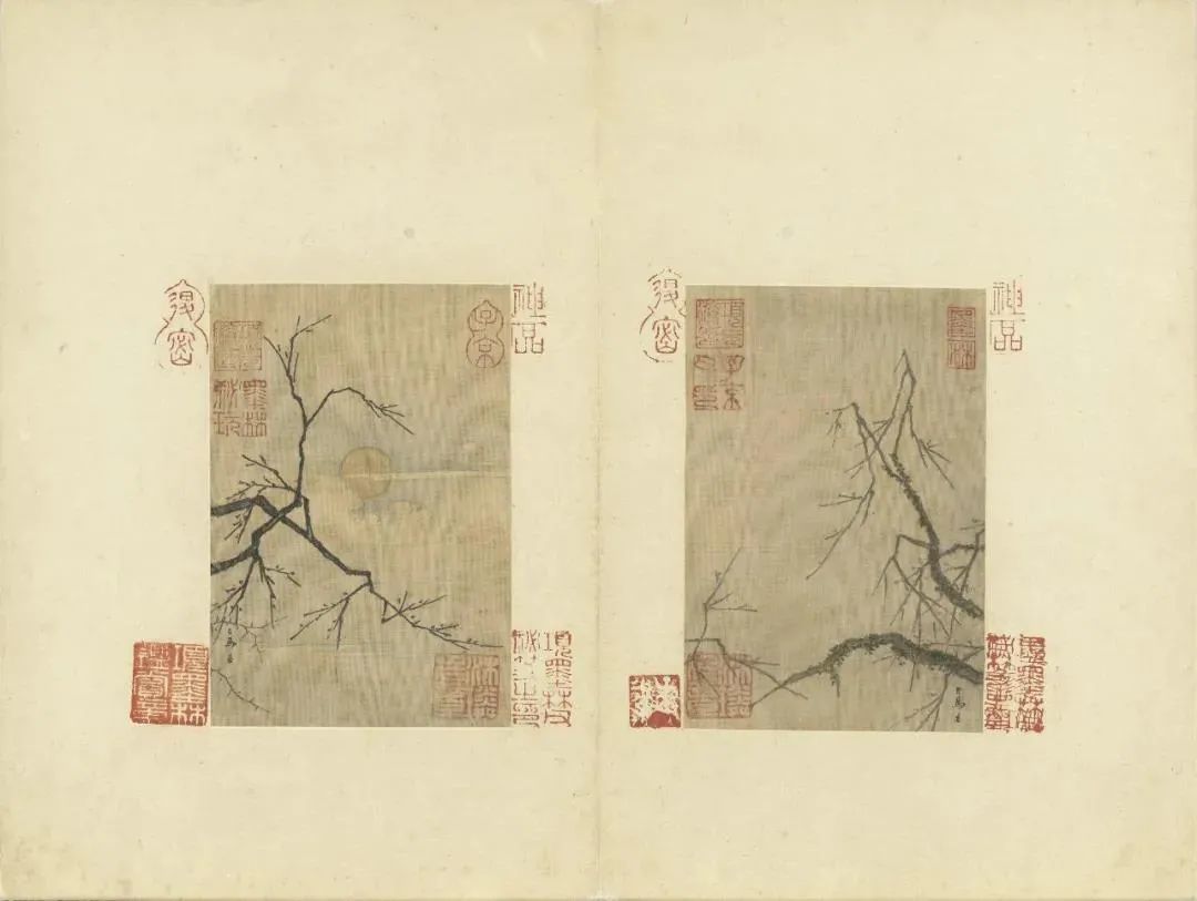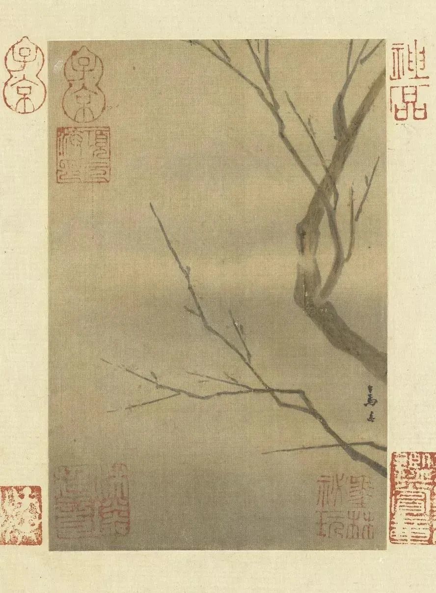 台北故宫藏马远梅花小品册共六幅,画心14.2x9.5cm,大小差不多与手机屏幕一般大。