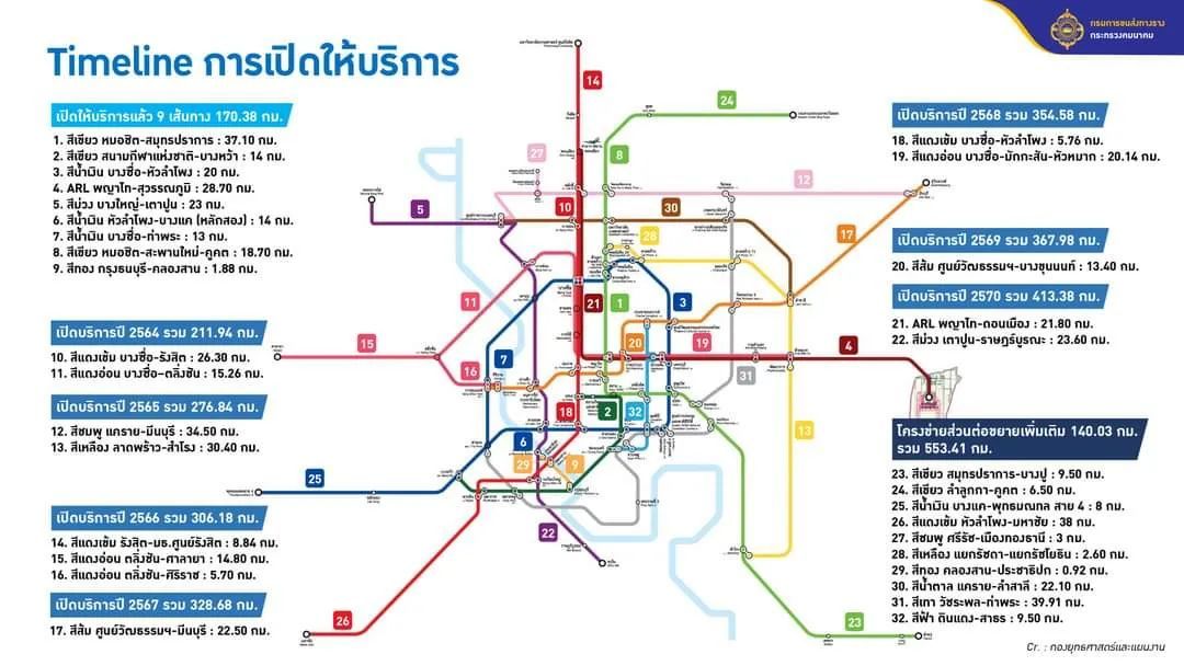 红色线一期和二期的开通使曼谷及周边地区的轨道交通线路运行总长度达到210.51公里,包括11条线路141站。