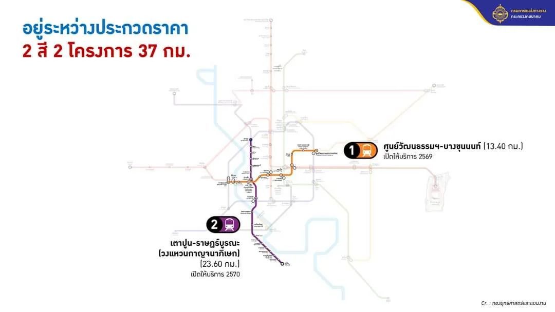 黄色线延伸线:拉差达路口-叻抛-叻差育庭路口(Ratchada Intersection- Lad Prao- Ratchayothin Intersection)2.6公里2站;