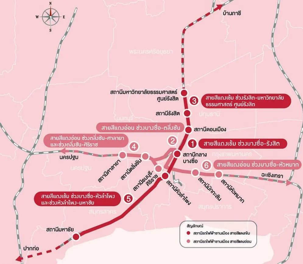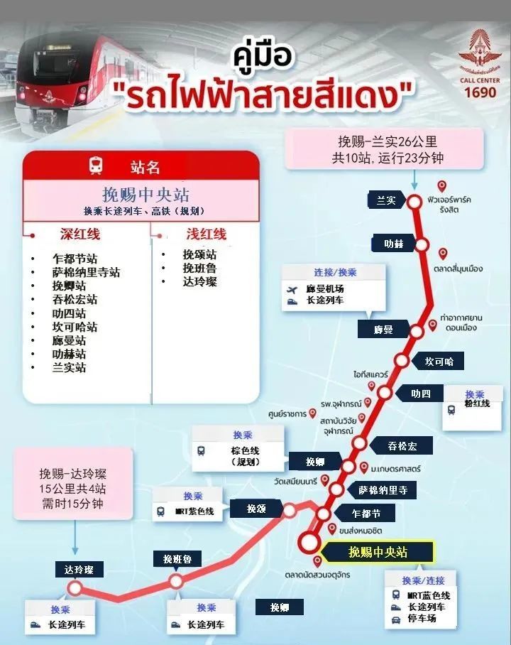 深红线(SRT):挽赐-兰实(Bang Sue -Rangsit,标号10),26.30公里10站;
