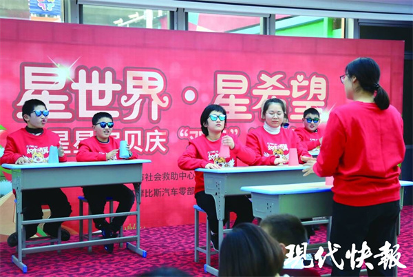 现代快报讯(通讯员 鲍海涛 张月 记者 姜振军 )12月24日下午,气温骤降,室外飘着小雨,盐城德馨医院儿童康复院区一楼大厅内,暖意浓浓,一片欢声笑语,“‘星世界 星希望’星星宝贝迎新年活动”在这里欢乐举行。现代快报记者了解到,当天爱心企业和爱心人士与“星星的孩子”们一起喜迎新年。