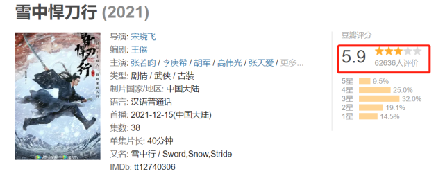由张若昀、李庚希、胡军主演的《雪中悍刀行》在过去一年的期待下,最终在豆瓣获得了5.9的评分。要说为什么评分这么低,一是剧情上改动较大,二则是选角问题。选角上尤其是女主角“姜泥”的扮演者,让人非常失望,她是在去年还在演高中生的李庚希。