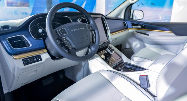 内饰方面,造型还是中规中矩,新车采用了传统的T字设计,做工和用料方面都让人满意,而且黑色棕色的撞色设计,同样营造出豪华的空间氛围,用料方面,这款车以搪塑材料为主,软质材料的运用质感不错,手感也很好,此外门把手等位置都加入了皮革包裹,显得高端很多,方向盘为四辐式设计,造型粗狂,左右配备的按键操作也方便。