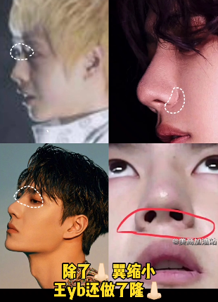 之后这个账号更是说王一博小时候鼻孔外露和鼻梁低,所以切除软组织和皮肤,还做了隆鼻。