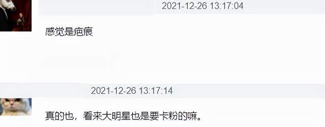 当然了,也有网友觉得有可能是卡粉,也就是传说中的粉底积液,不过也有人反驳有疤痕的话更容易卡粉,敢情这还是个双重buff?