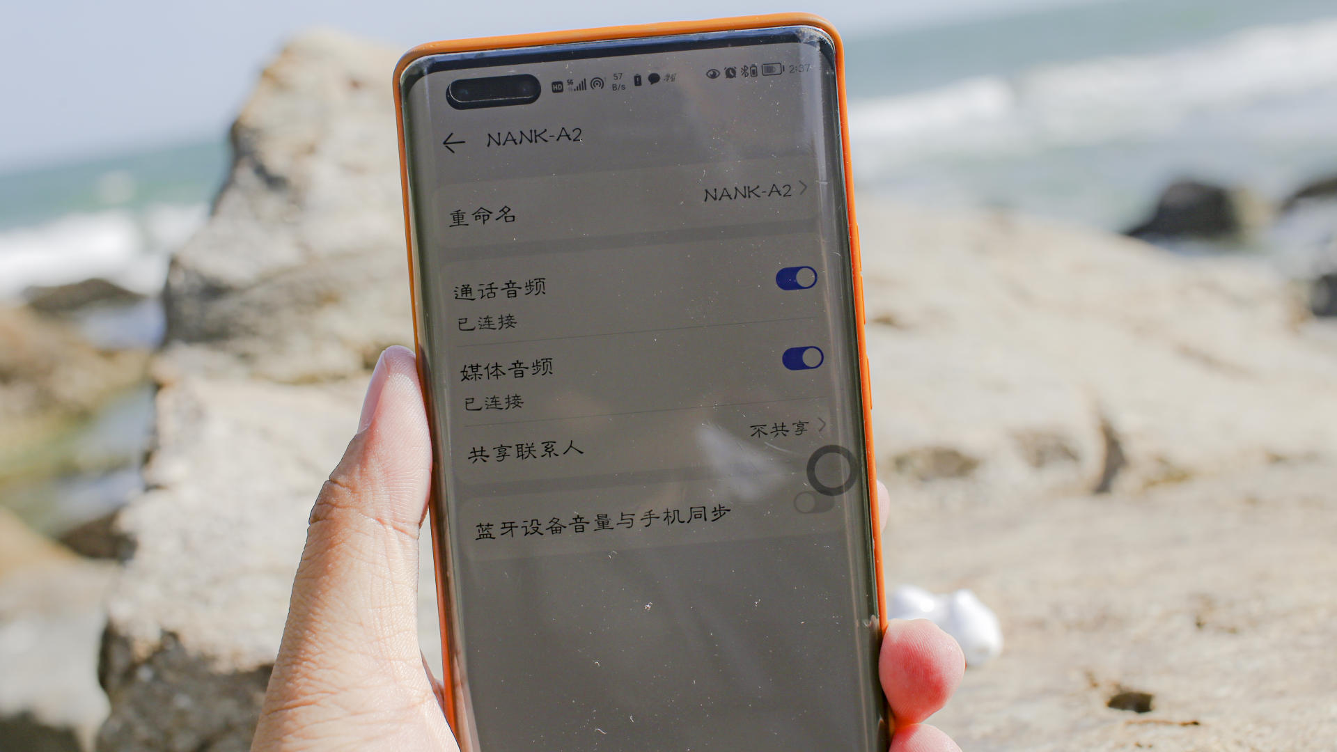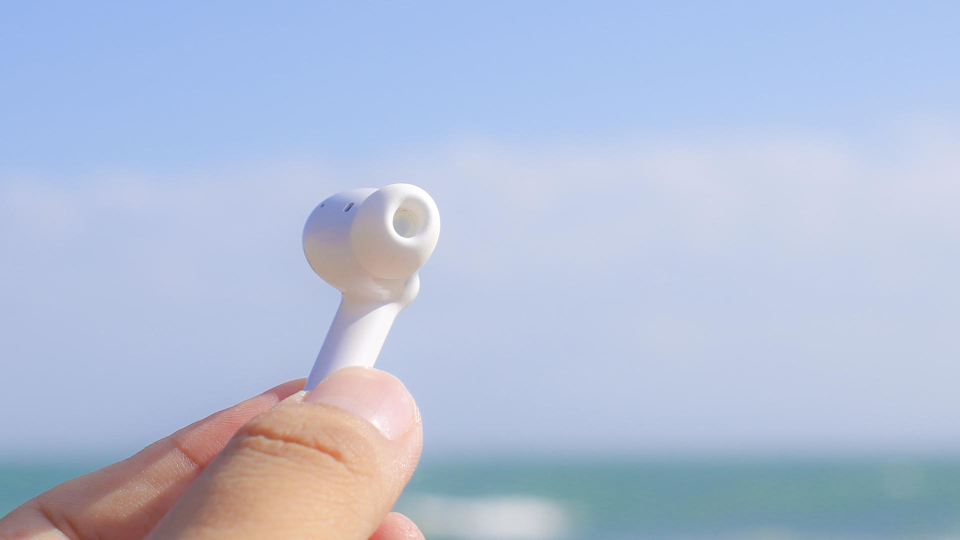 南卡A2单耳仅4.1g,入耳如无误,佩戴起来也很舒适,没有异物感,连接之后,我们就能够启动降噪模式,将海边吵闹的海浪声变得宁静,而且由于A2拥有防水功能,不惧汗水,但是海水我们还是不要去尝试,会腐蚀。