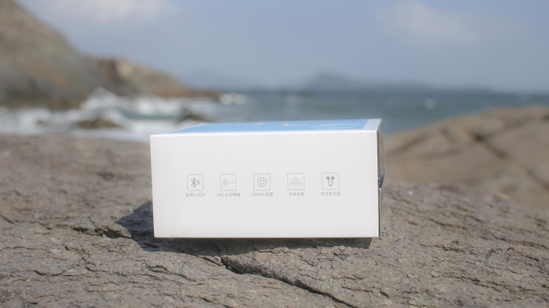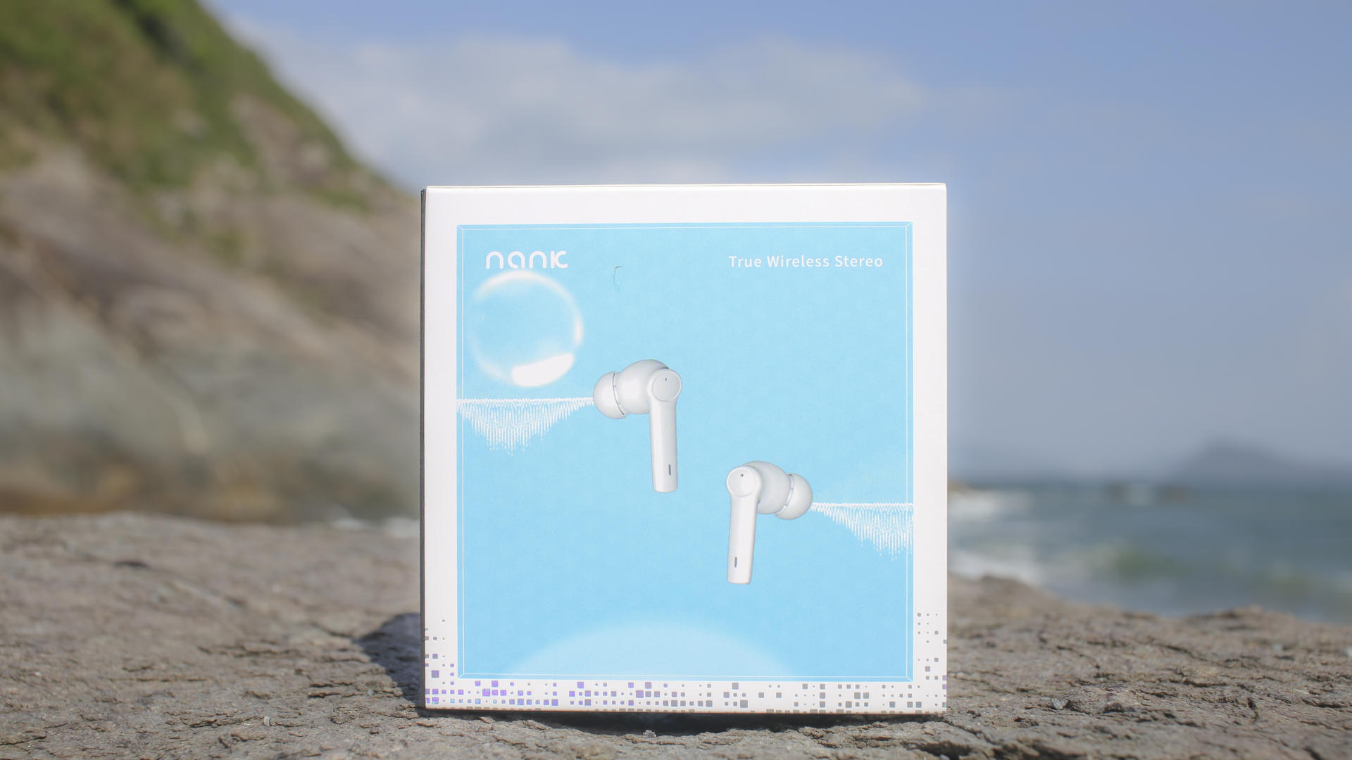 这时我想起了,前段时间入手的主降噪真无线蓝牙耳机南卡A2,这款是算我第一款体验到的南卡主降噪蓝牙耳机吧。包装白蓝的主色调与海边的环境非常搭配,尤其简洁的包装设计,底部则是跳动的音频,中间就是南卡的logo。