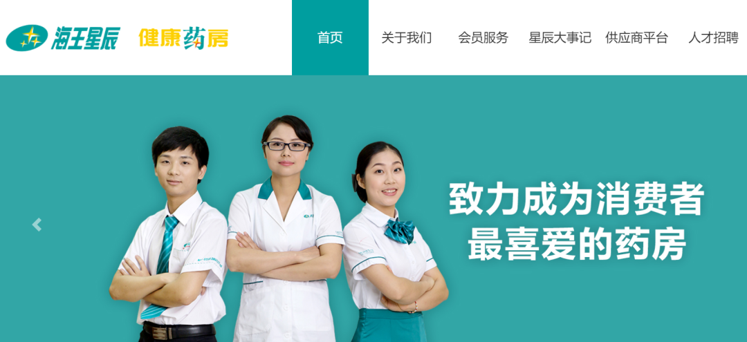 而在海王星辰的首页,还醒目的挂着“致力成为消费者最喜爱的药房”的标语……