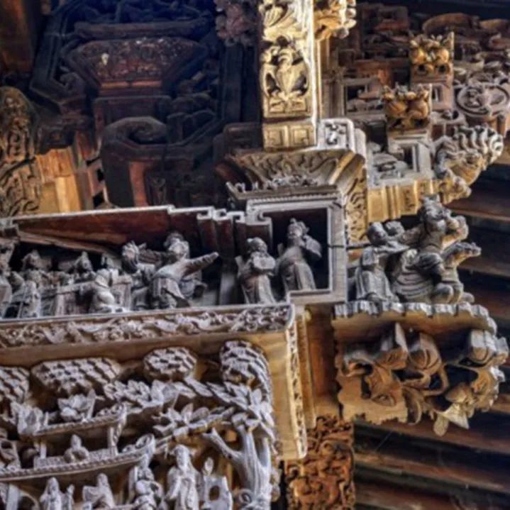 马上桥花厅是国家级文物保护单位,始建于1820年,现存建筑宽近40米,纵深60多米,占地近1800平方米,前后共四进。整座建筑以木雕装饰为主要特色,融砖雕、堆塑、淡彩墨画为一体,堪称“鬼斧神工”。