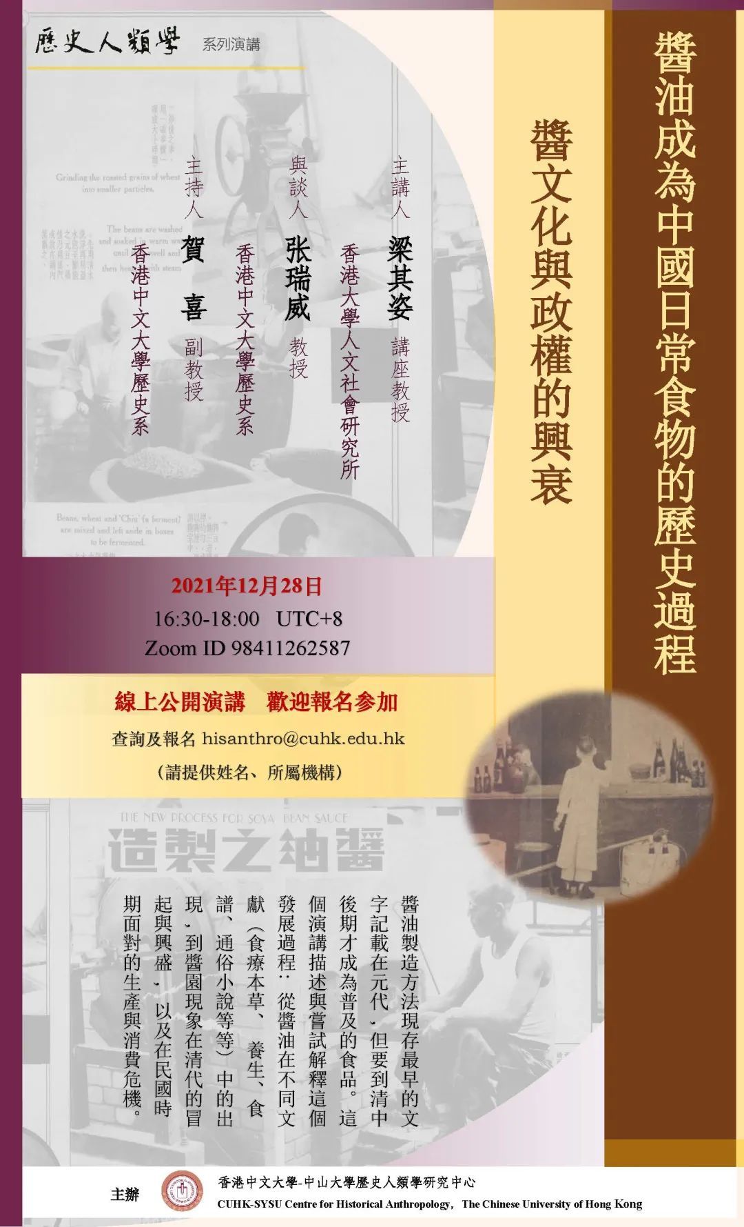 講 題:醬油成為中國日常食物的歷史過程:醬文化與政權的興衰