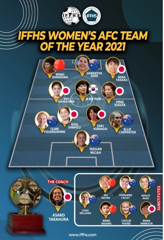 球长体育12月26日讯 IFFHS(国际足联历史与统计联合会)日前评选出了2021年度亚足联女足最佳阵容,王珊珊位列首发,王霜、吴海燕进替补阵容。