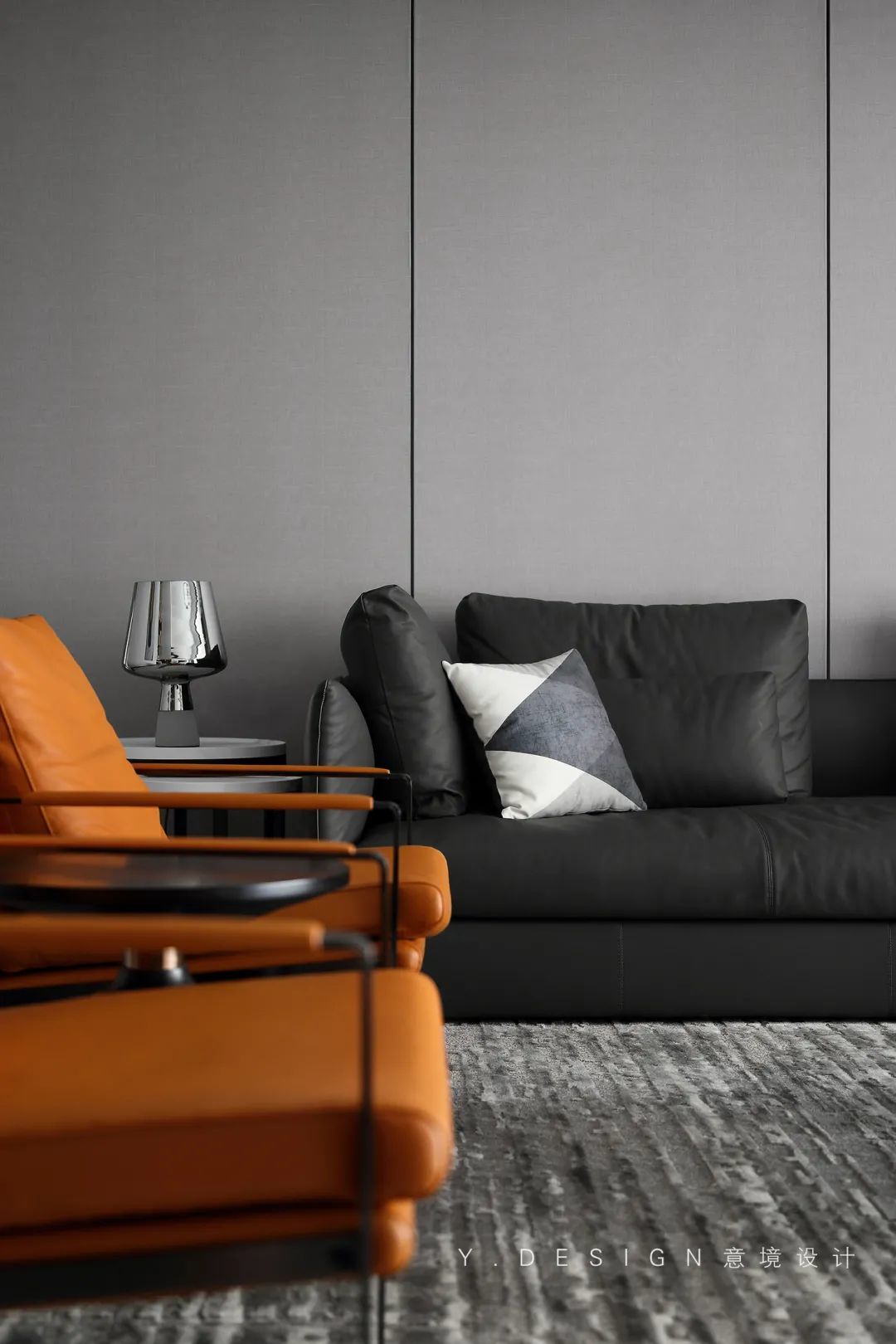 ▲现代风的客厅,以黑白灰设计基调,加入橙色的家具布置,在低调高级的中间里带来一种活力优雅的气质。