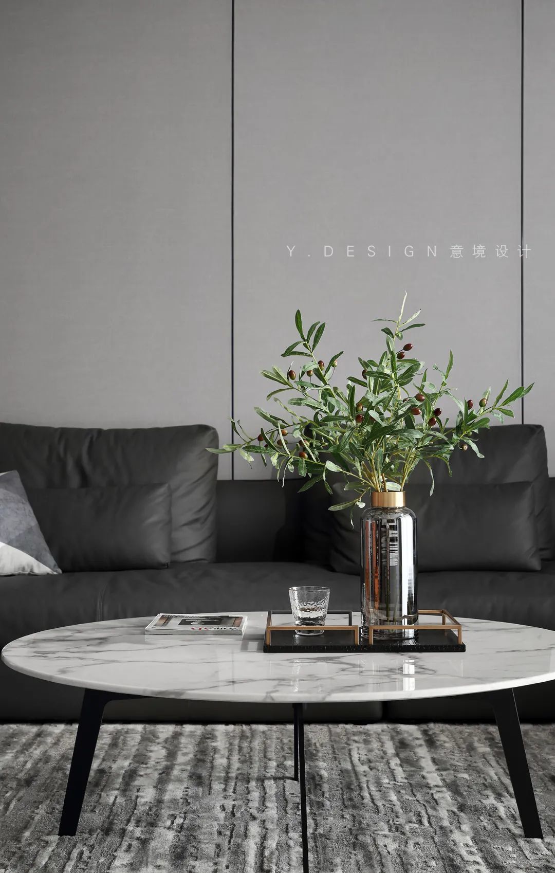 ▲白色岩板茶几,摆上精致的茶盘,布置上玻璃杯与花瓶,也营造出一种现代精致的时尚气质。