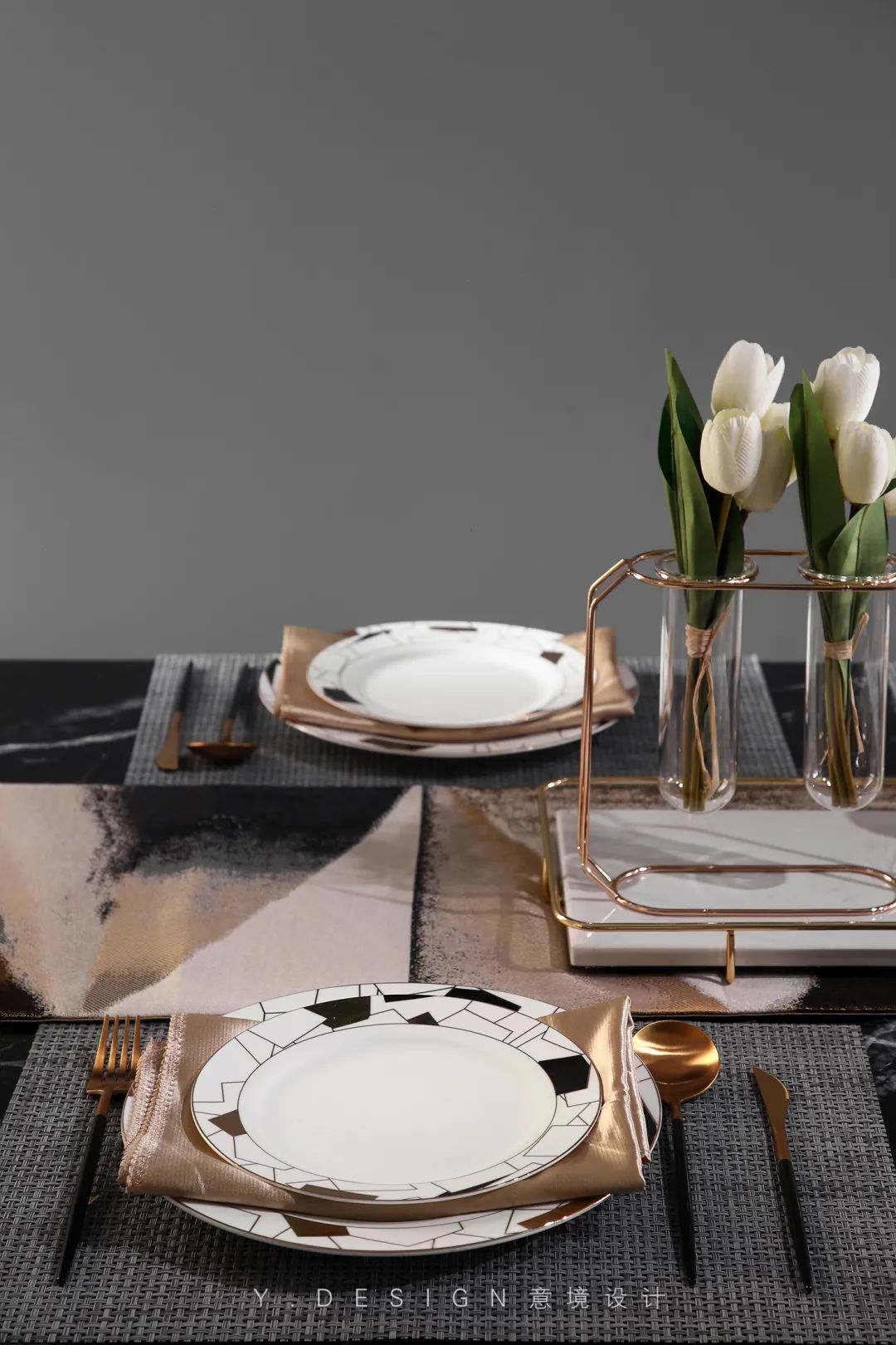 ▲餐桌上布置轻奢风的餐具、花瓶与摆饰品,也让用餐氛围更加高级精致而有仪式感。