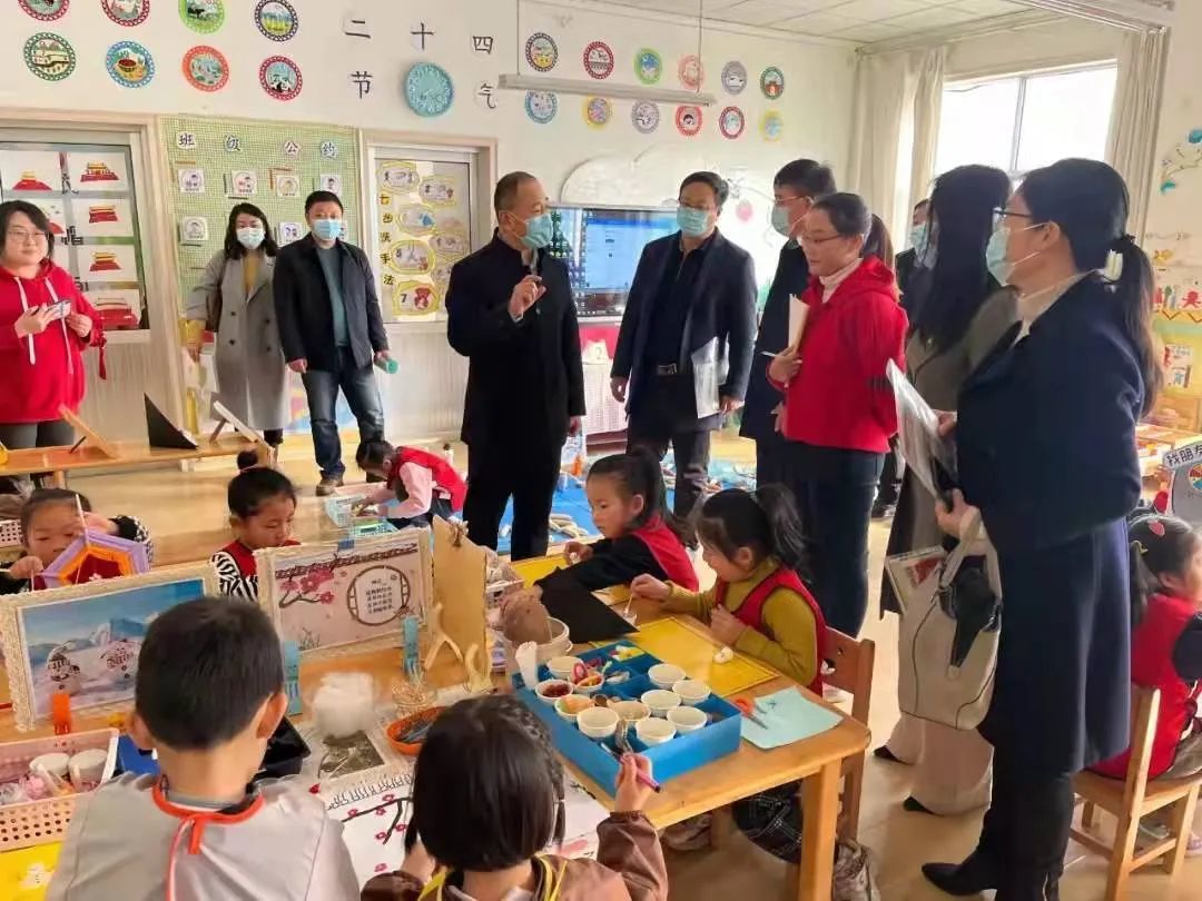 领导和老师们走进幼儿园,参观了幼儿园户外环境、班级环境创设、幼儿区域活动等,对幼儿在园生活和学习方式进行了观摩。