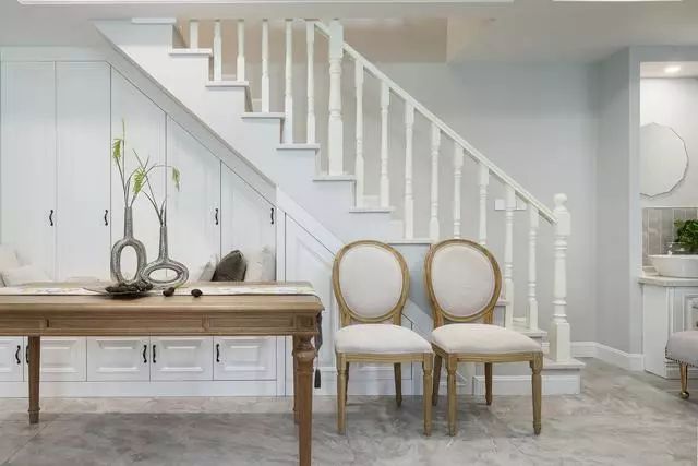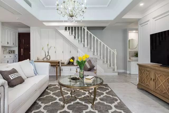 今天小编要跟大家分享的是一套面积为128㎡的复式楼装修效果图,这套复式楼采用的是现代美式风装修,在颜色上也是以白色为主,然后搭配了灰色地砖以及美式风家具,整体看起来也是非常有质感的,并且档次也高!
