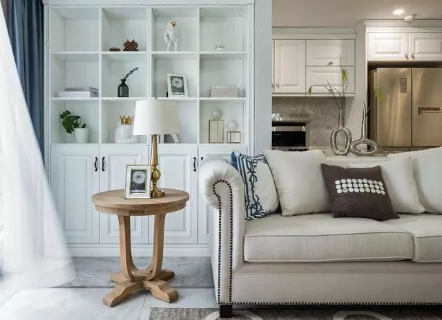 客厅与厨房之间的共同墙体还做了收纳展示柜的设计呢~