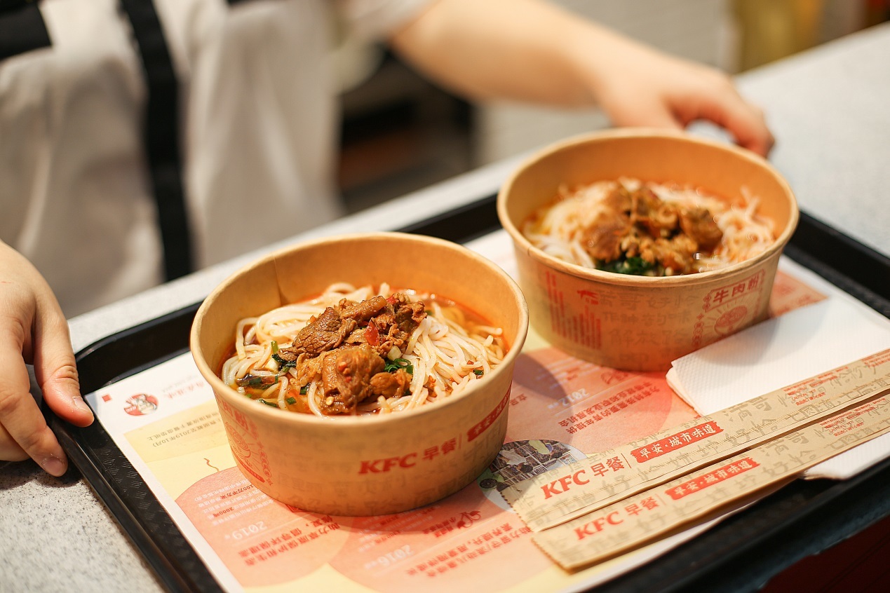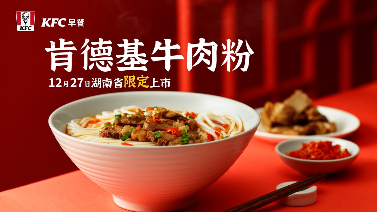 自今年肯德基推出“早安·城市味道”以来,已推出武汉热干面、福建肉燕、河南胡辣汤、江浙小笼包等城市特色早餐,如今湖南肯德基接过接力棒,将全新产品“肯德基牛肉粉”加入其中。