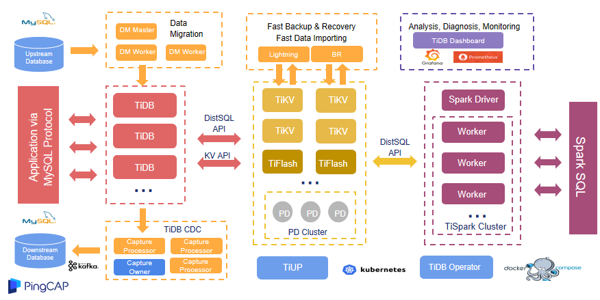 备份工具包括TiDB本身的BR工具,可以直接绕过TiDB Server层进行存储层进行物理上的快速备份。TiDB也支持TiSpark的方式直接读取TiKV和TiFlash上的数据,由不同的上层读取底层的数据。