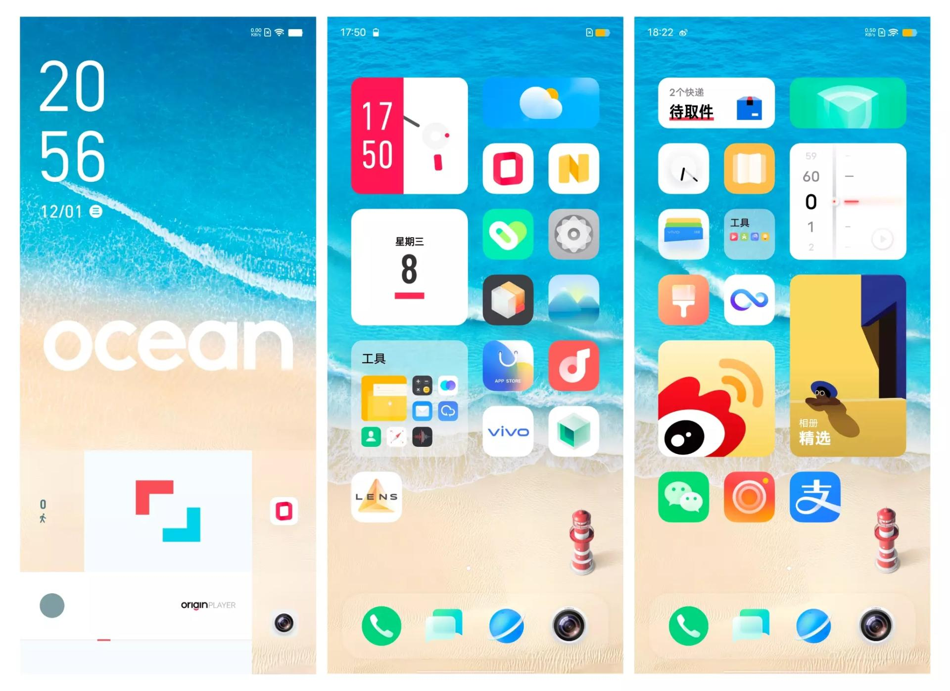 OriginOS Ocean的主界面也有了非常明显的变化,vivo放弃了上一代的平行世界穿梭功能,而是将两个桌面融合到了一块,我们可以直接在桌面中随意调整应用图标的大小,并且进行排列组合,好用的华容网格也得到了延续,配色上的进一步丰富,使大家可以搭配出更赏心悦目的视觉效果。同时,原子组件也适配了更多的第三方应用,用户可以直接点进应用界面,综合使用体验有了显著升级。