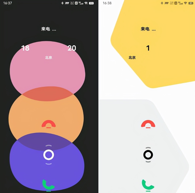 当然,OriginOS Ocean除了系统表面的变化,对系统内置的应用也带来了更好的升级。比如手机最基础的通话界面,它巧妙的运用了色彩来传递信息,让陌生人和联系人可以用不同的颜色与图形组合方案来区分,使重要来电更能一目了然。