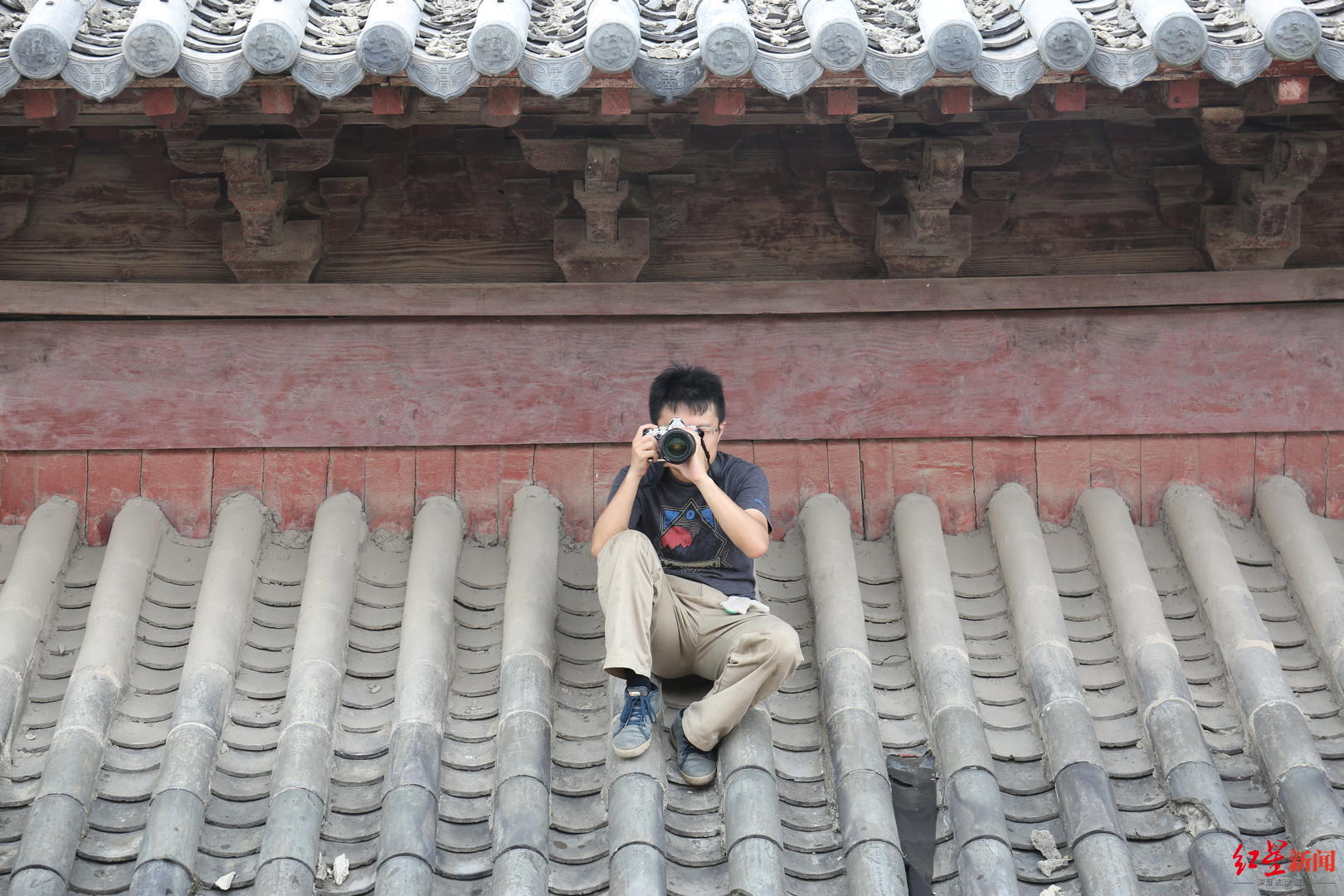 进行古建调查的年轻人