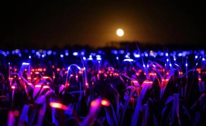 莱利斯塔德(Lelystad)小镇有一处2公顷的韭葱农田,在以沉浸式科技艺术闻名的荷兰艺术家丹·罗斯加德(Daan Roosegaarde)打造下化身为一件名为Grow 的农田沉浸式艺术品。