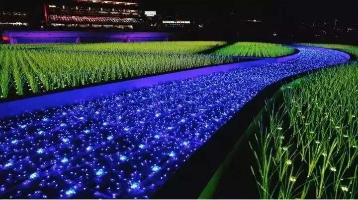 原来农田也可以成为一件艺术品,日本江户极彩棚田借用灯光的艺术效果赋予其一年四季不同的景观艺术,从蔚蓝到黄金,变幻的光影营造了如梦似幻的田园美景。