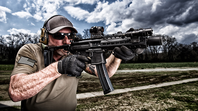 MPP手枪的枪管偏短,最长的枪管子也就是.308 Win用的12.5英寸,.300 BLK只有7.5英寸。以至于,这枪在发射的时候,后坐力会非常大,毕竟你用的怎么都是步枪弹。所以,枪口还要加上一个高效的制退器。