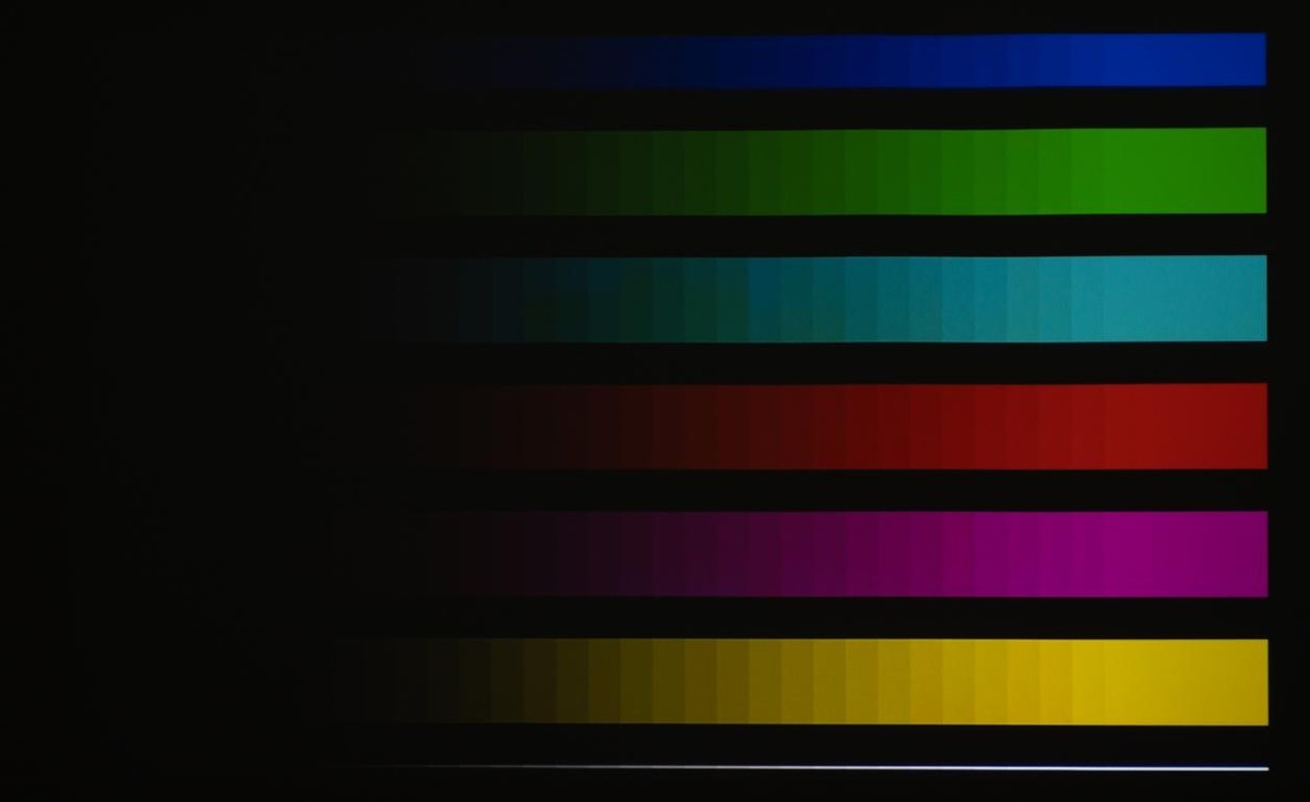 对比度的测试中,除了实际测试黑白过渡对比之外,对于颜色的过渡对比也做了一定测试,结果显示高对比度可轻松拿捏。