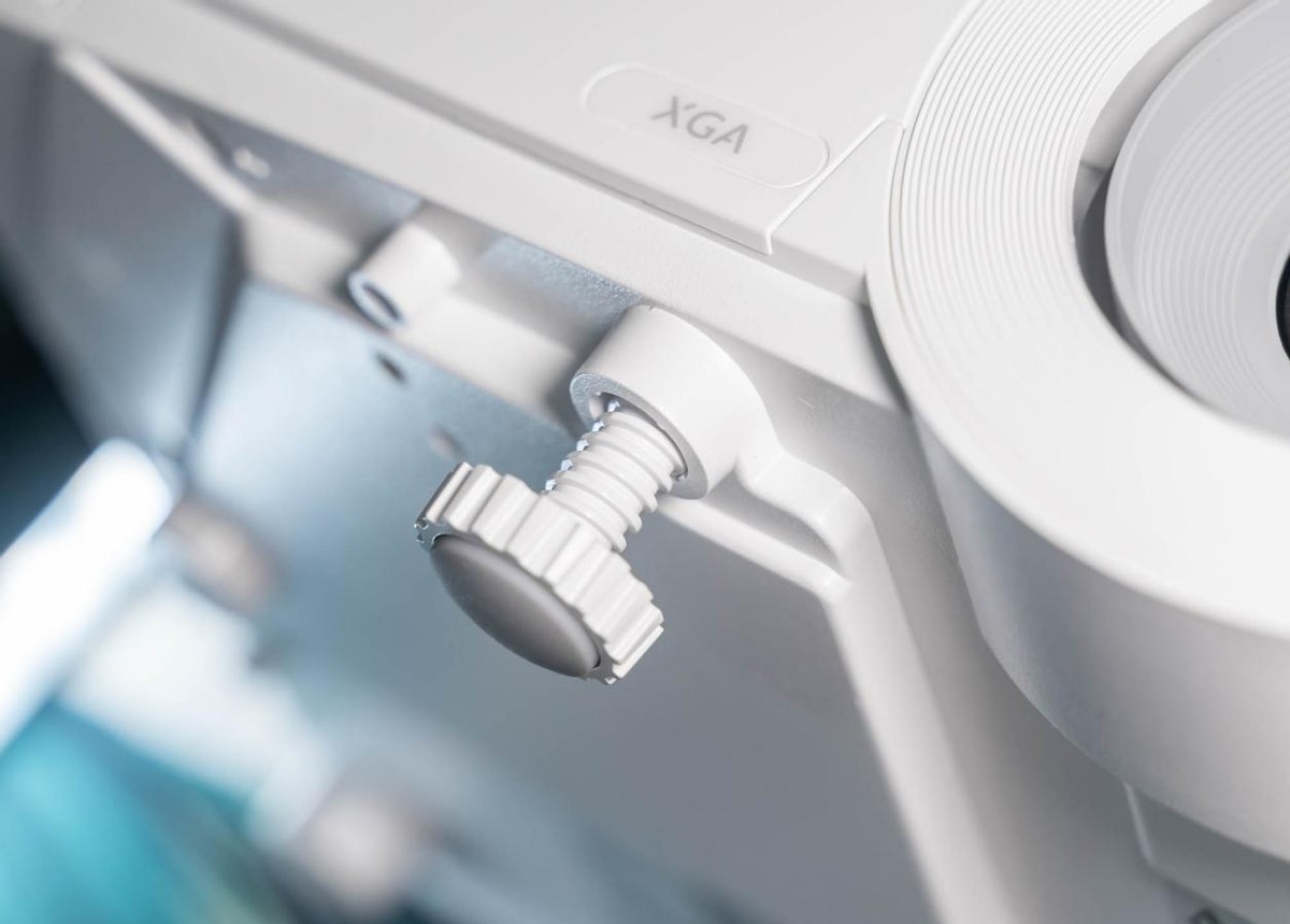 机身顶部设有对焦调节滑钮,可以精准调节画面尺寸与清晰度,操作时只需用手指滑动调整。两段式结构式设计分别可控制变焦和聚焦,变焦有拨杆限制调整空间,1.1x标准变焦比能适当在极限空间中找出10%的扩大画面显示区域。聚焦环则是对镜头一次性调整到位,平时固定放置明基MX560,第一次调整之后即可持续使用,并不需要每次开机都做调整。