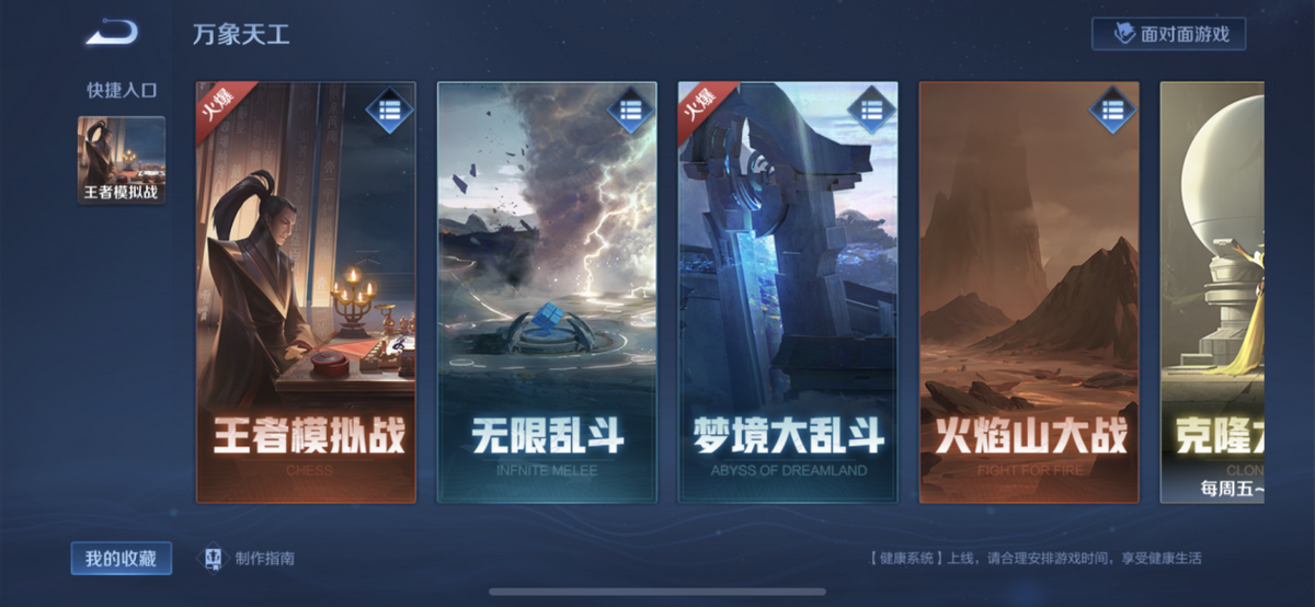 目前,王者荣耀现有的所有娱乐模式玩法全部汇集在了这里,比如梦境大乱斗、五军对决、王者模拟战等等,旨在将“万象天工”这个系统打造成一个极受玩家青睐和极富欢快因子的“奇趣游戏盒子”。也因如此,在未来将要上线的各种新的娱乐模式也将会在“万象天工”中与大家见面。