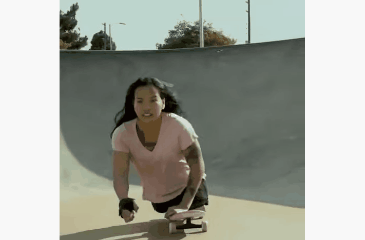 她喜欢在滑板上的自己,可以做各种动作,可以去任何地方。