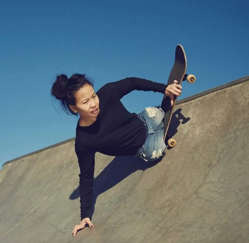 滑板已经融入Kanya的生活,是她必不可少的一部分。