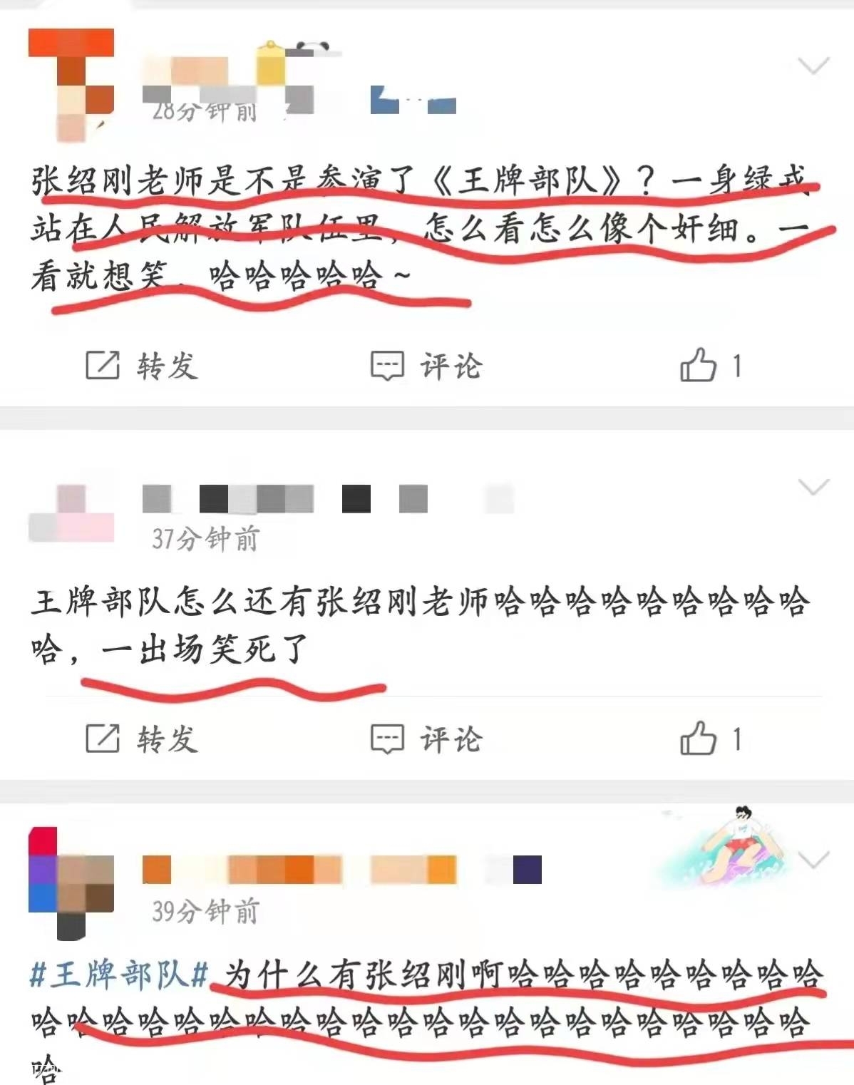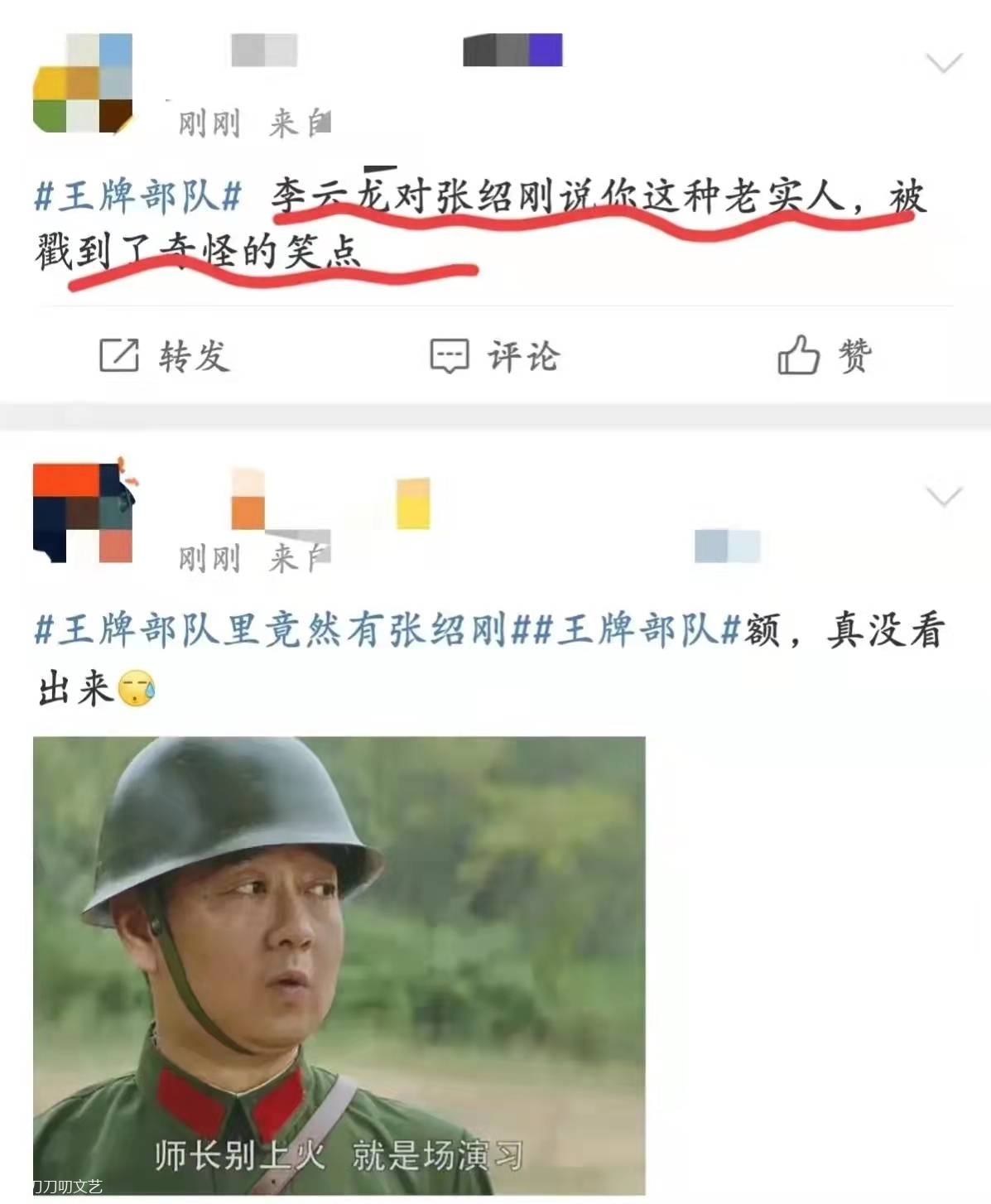 张绍刚,没想到挺会演戏!《王牌部队》的追剧观众发现,李幼斌身边出现了一个穿着军装的熟面孔,不仅声音熟悉、长相熟悉,演得还挺诙谐生动,有点子喜剧天赋啊!