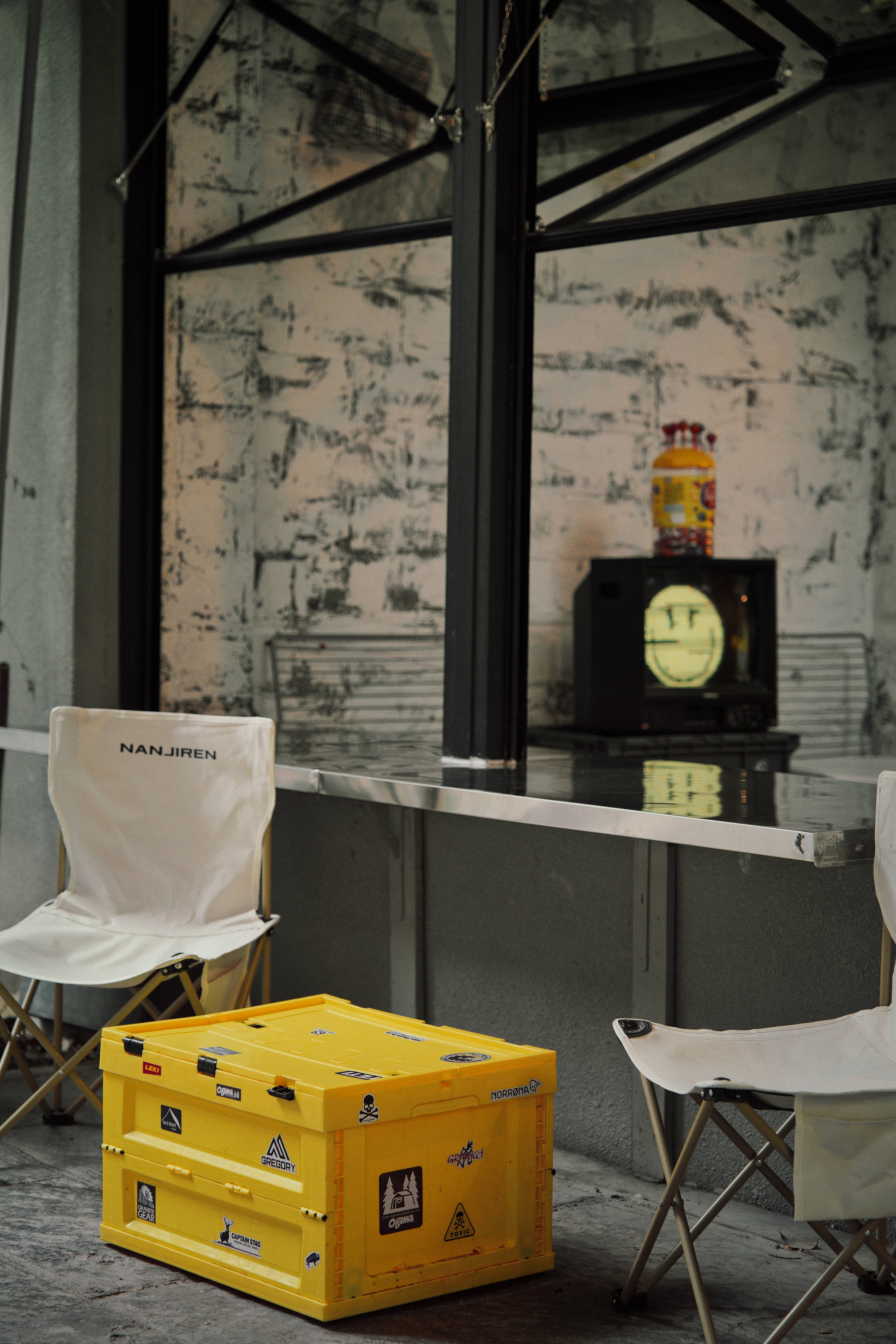 简简单单的白墙里嵌着一些隔板,一些置物架和一些柜子,上面摆放着户外用品和植物,灯光温暖,曾有网友称其是“日式咖啡馆”。