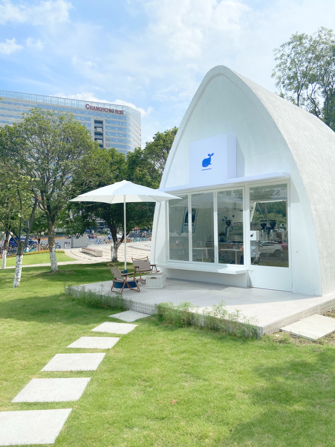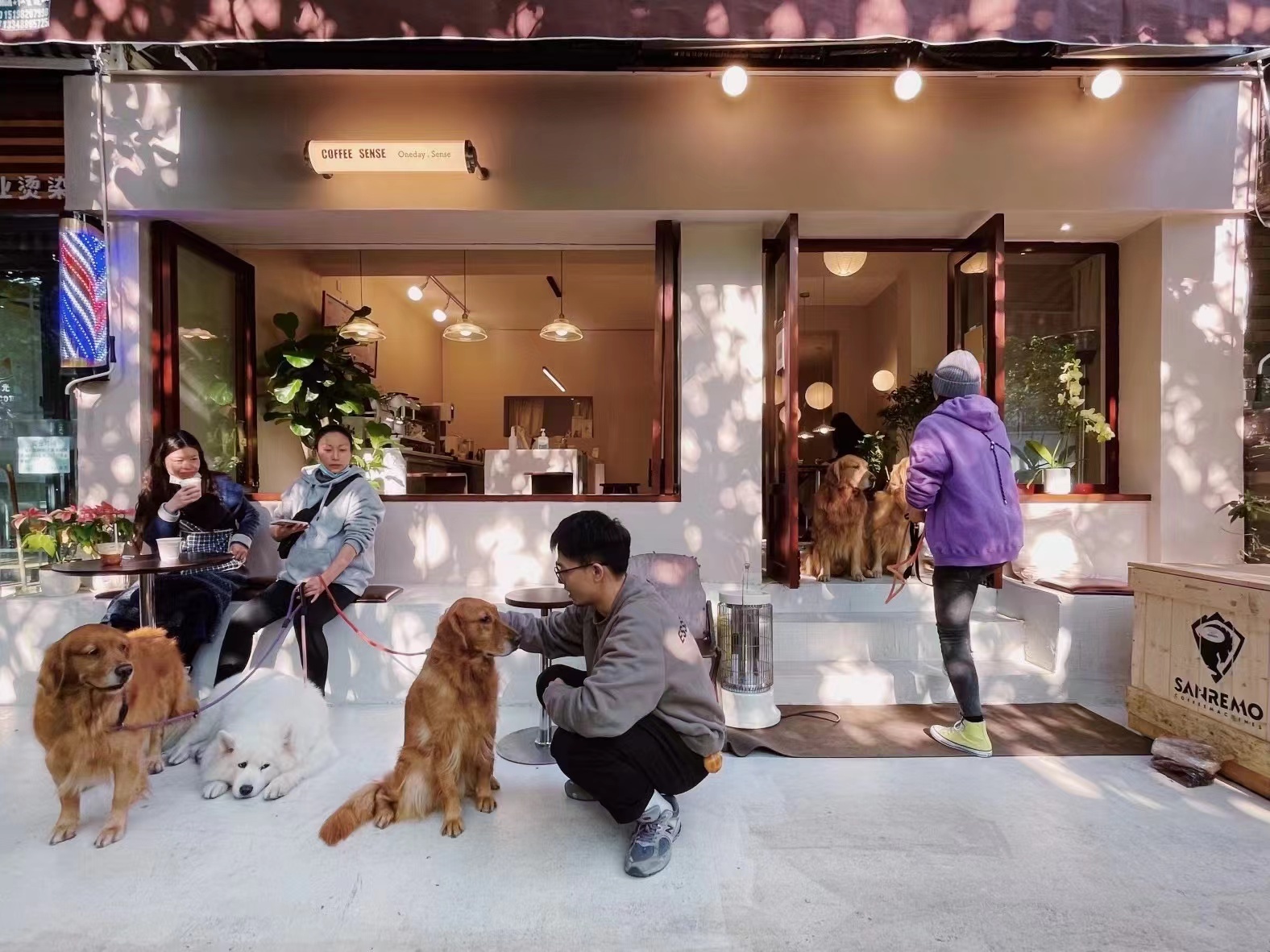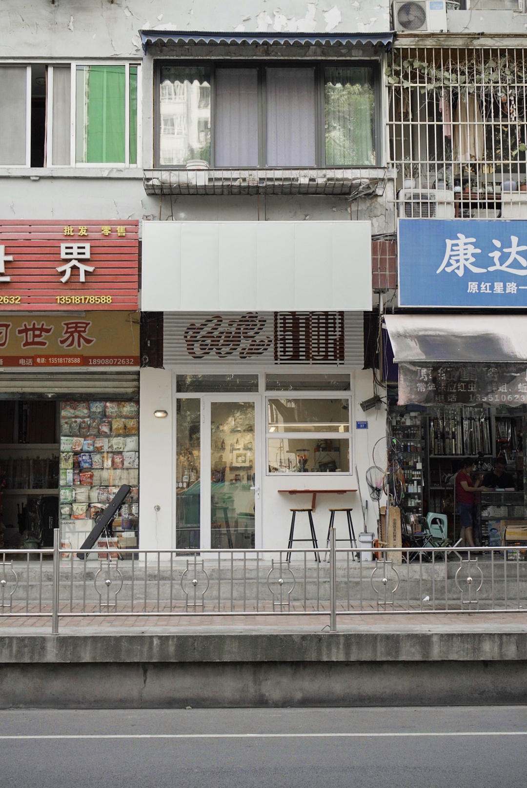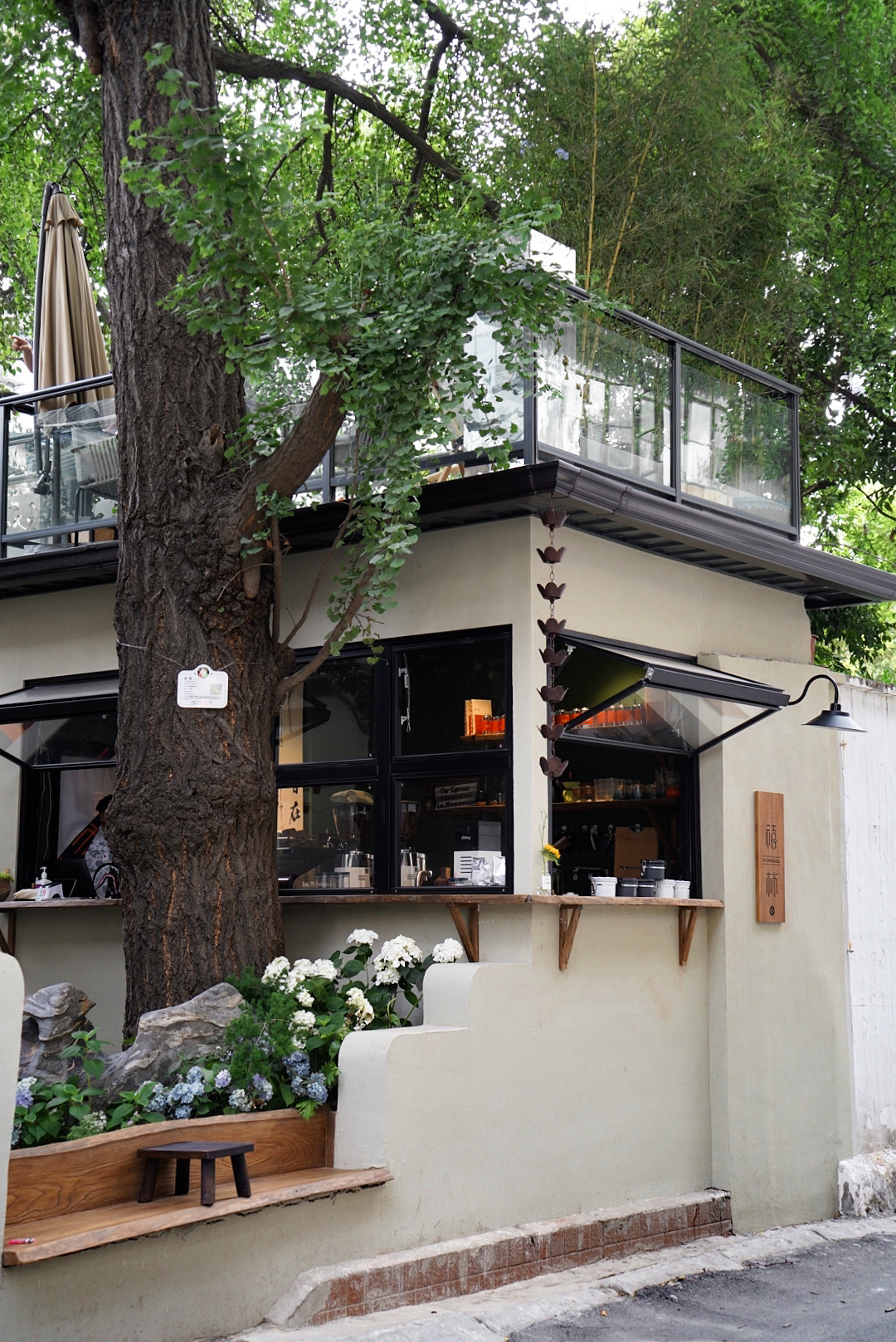 不同于时下流行的小门脸的窗口店,Coffee Sense选择了大开口的横向店铺,把咖啡店敞开给小街对面的白墙、白墙外探头而出的绿树、以及来来往往的路人。