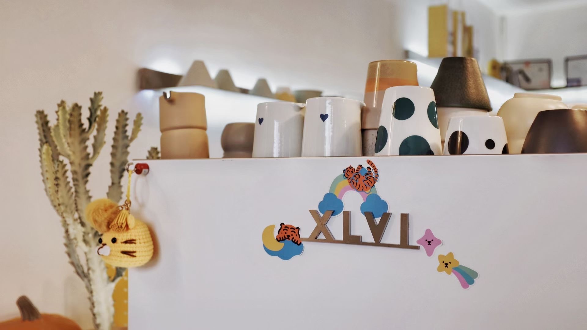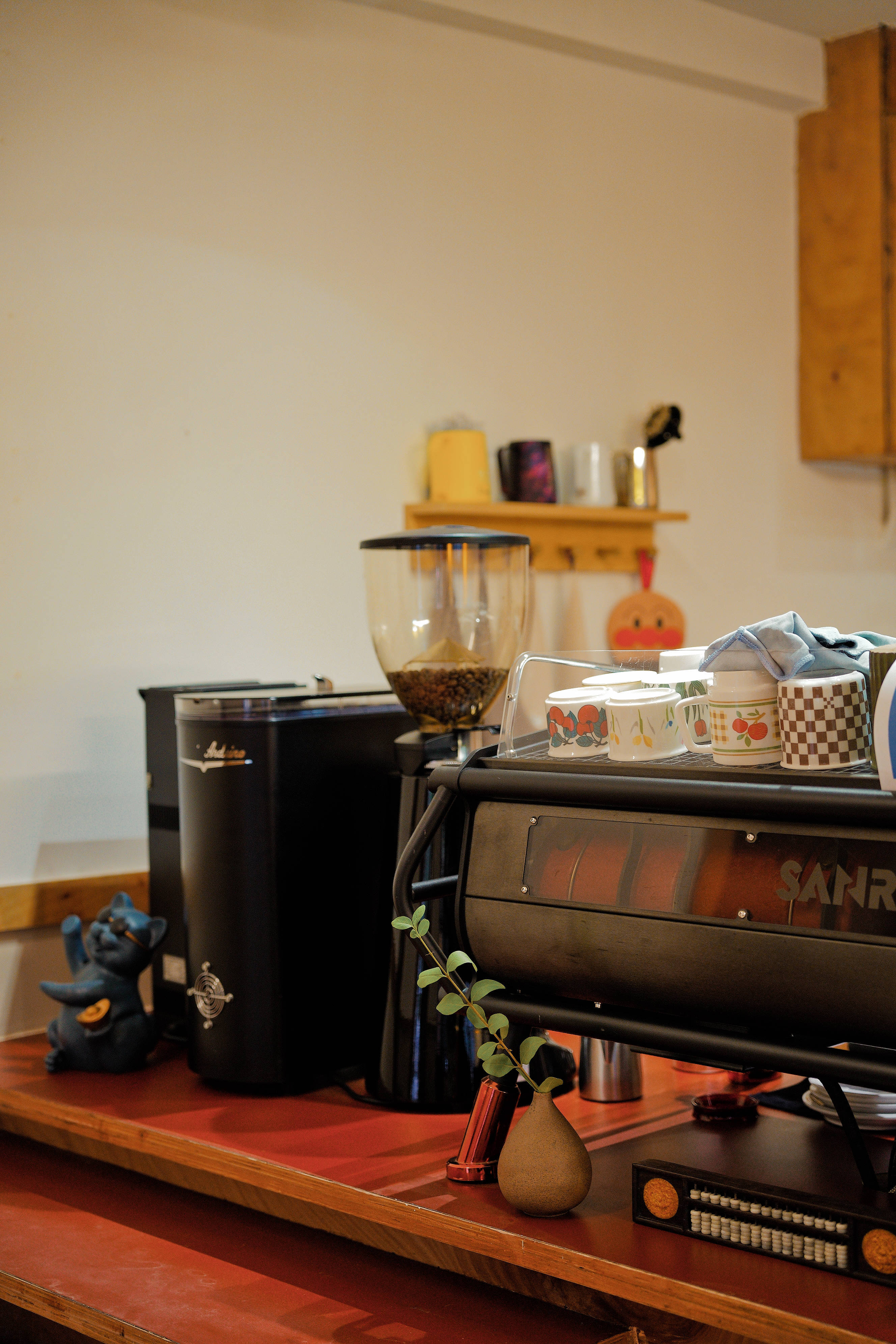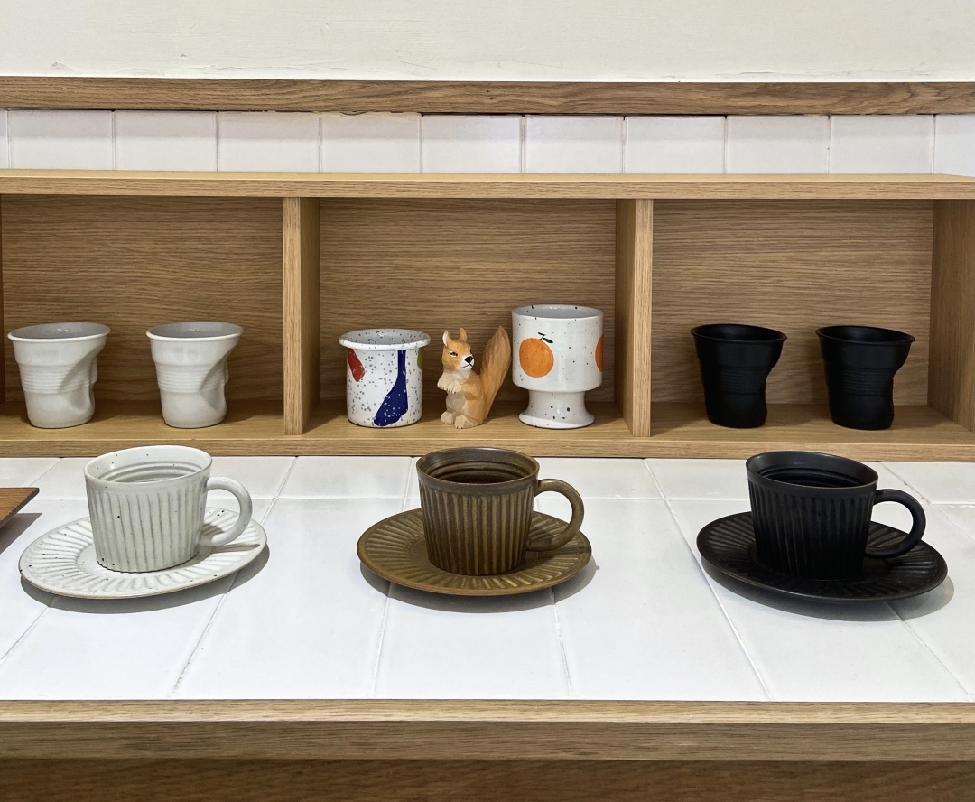 拾级而上,进门就受到主理人大大的热情招呼。目之所及,利落吧台、桌椅整洁、可爱清新的小摆件、各种样式的杯子,一个干净清爽的日式咖啡店立在眼前。
