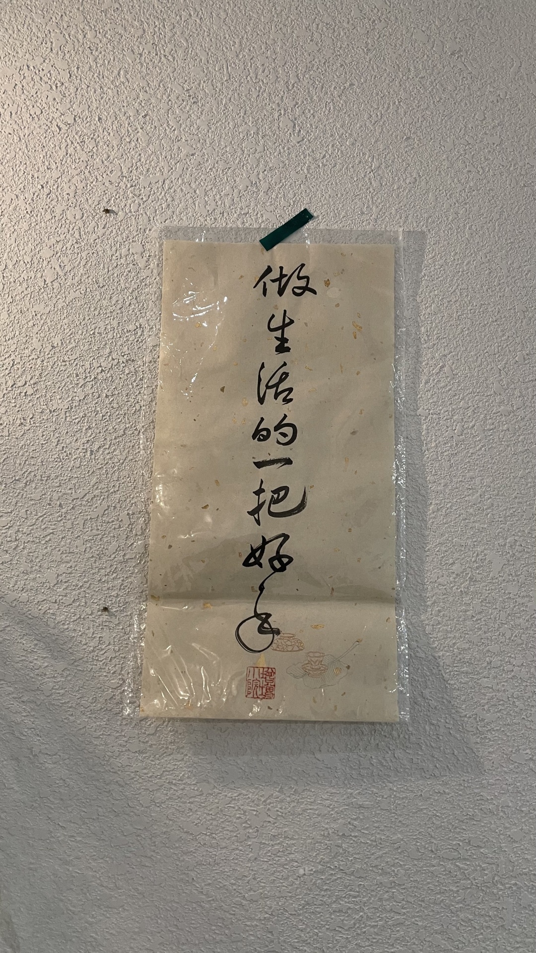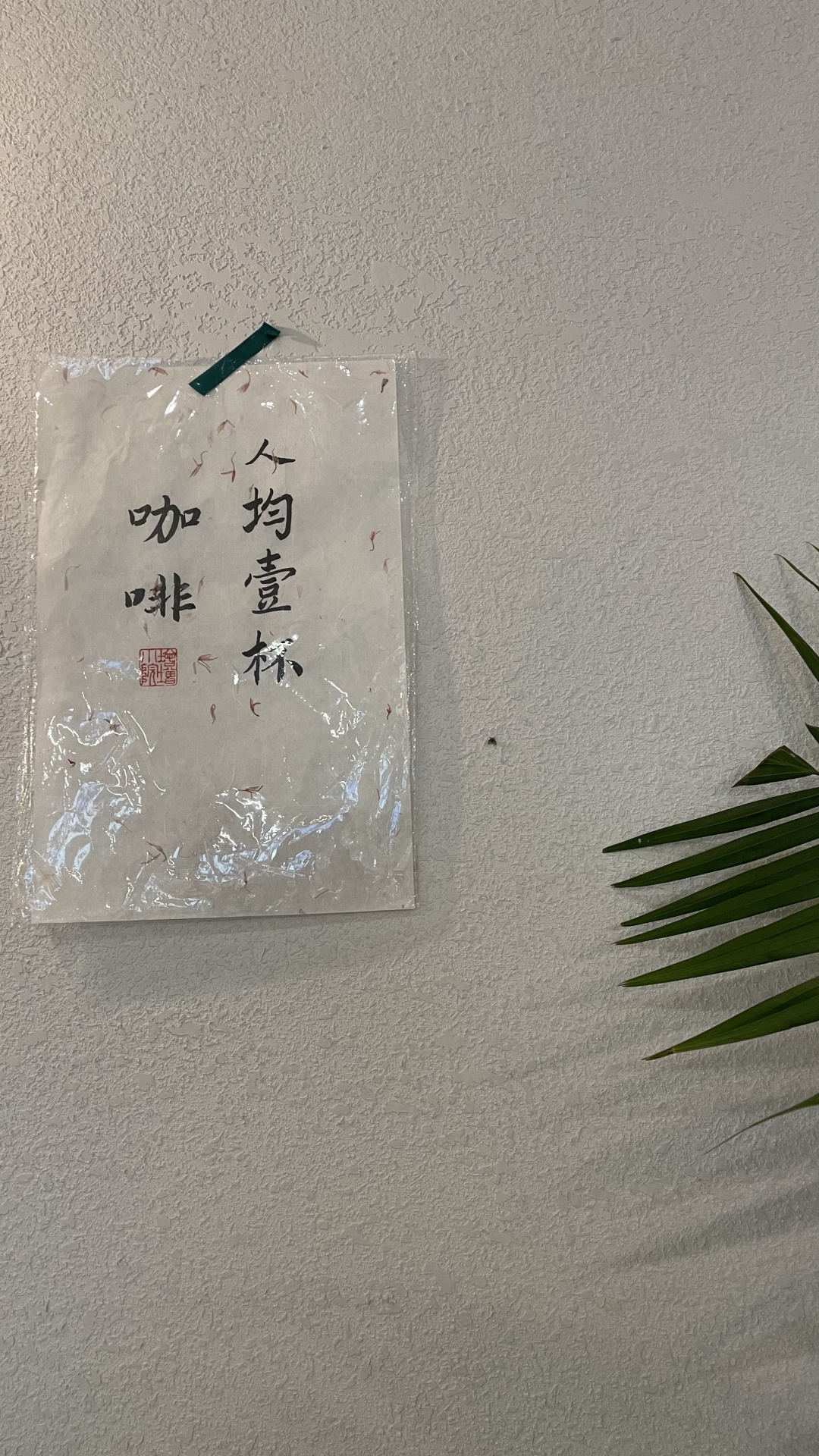 店铺空间不大,总共3个座位,但装陈却是有腔有调。墙面上的山水画与书法、吧台的老式花雕木板、门外的瓦当、墙外的辅首,妥妥国风乱炖,居然与咖啡和谐相配。