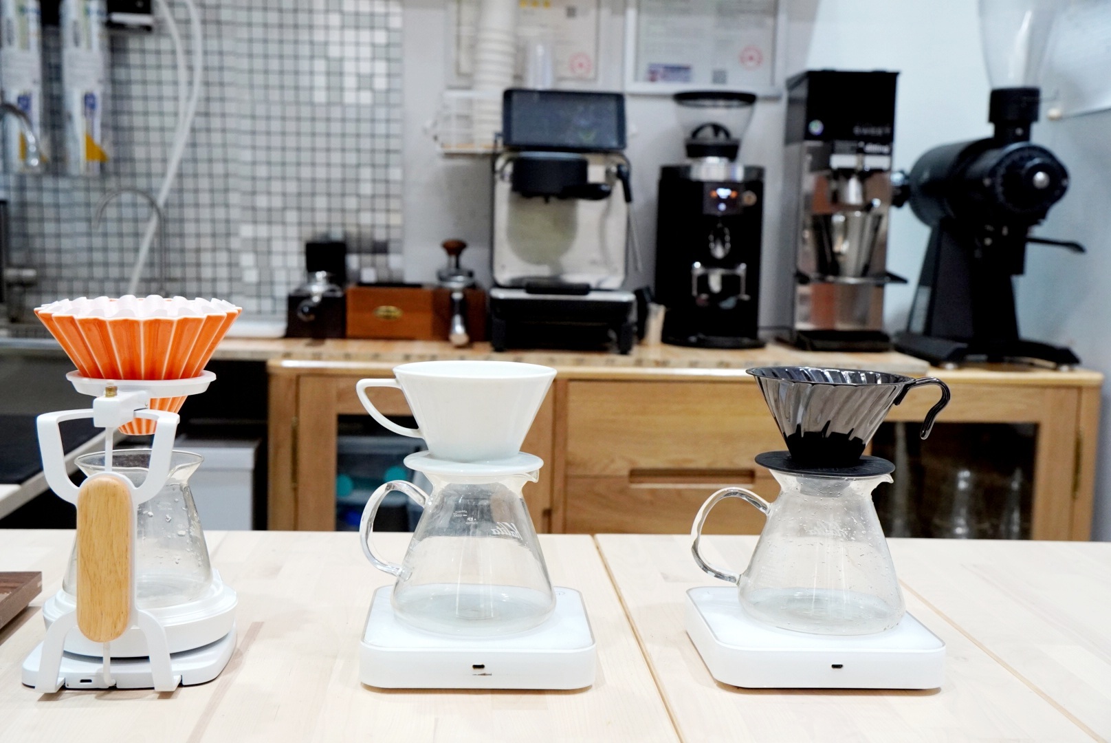 比如Decent PRO,咖啡界的Apple,极客专属咖啡机,彰显科学萃取的力量; 三台顶级磨豆机,低调中显实力;试管装的咖啡豆冷藏于冰箱,专业藏于内里;精心挑选的俄罗斯国宝级花式咖啡杯与Kruve手冲品鉴杯,在细节中表达用心。