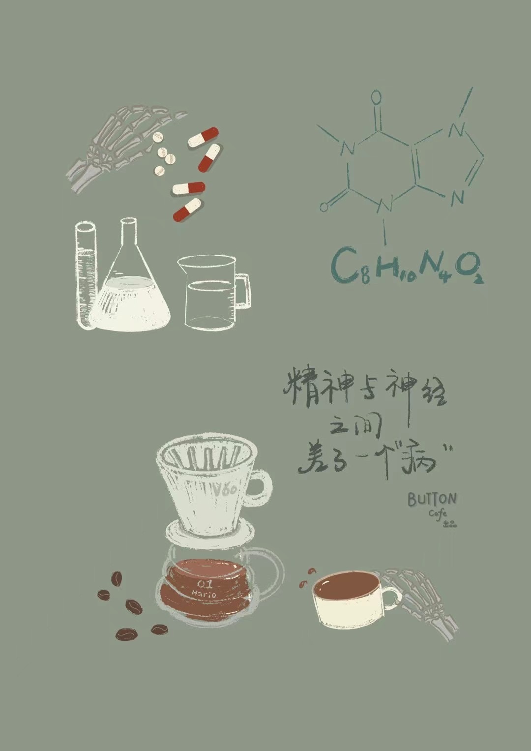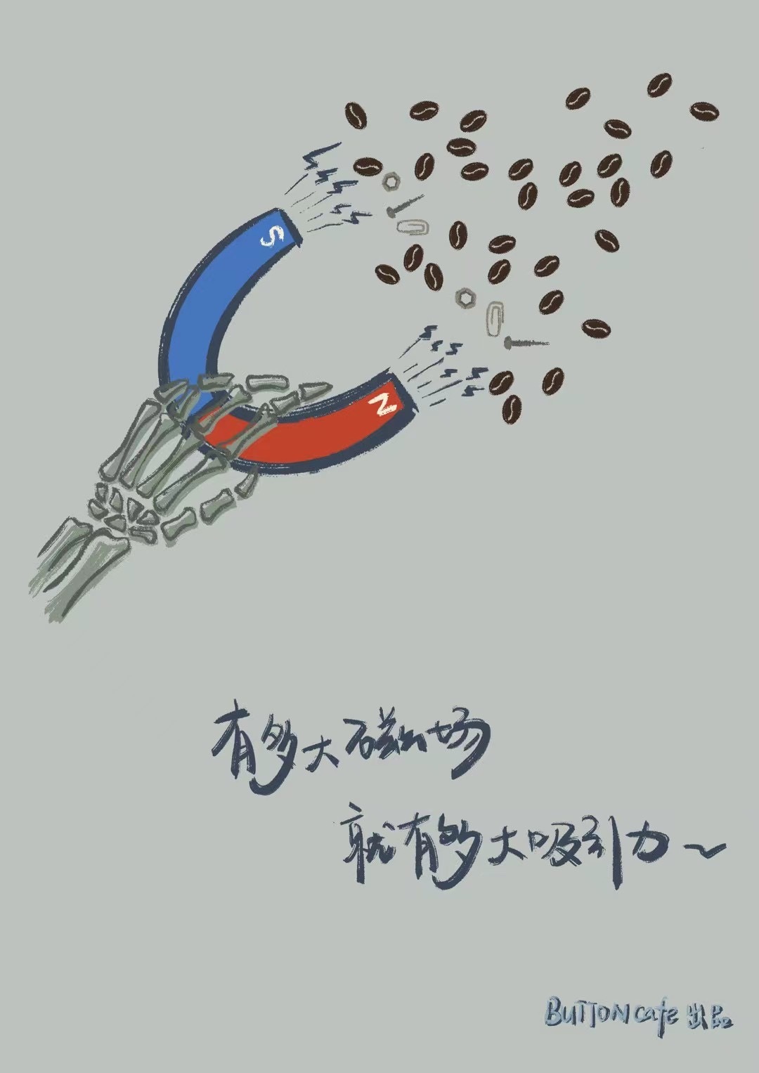 为什么以骷髅手Logo,并取名“Button”?店主希望,咖啡能成为开启美好一天的按钮。