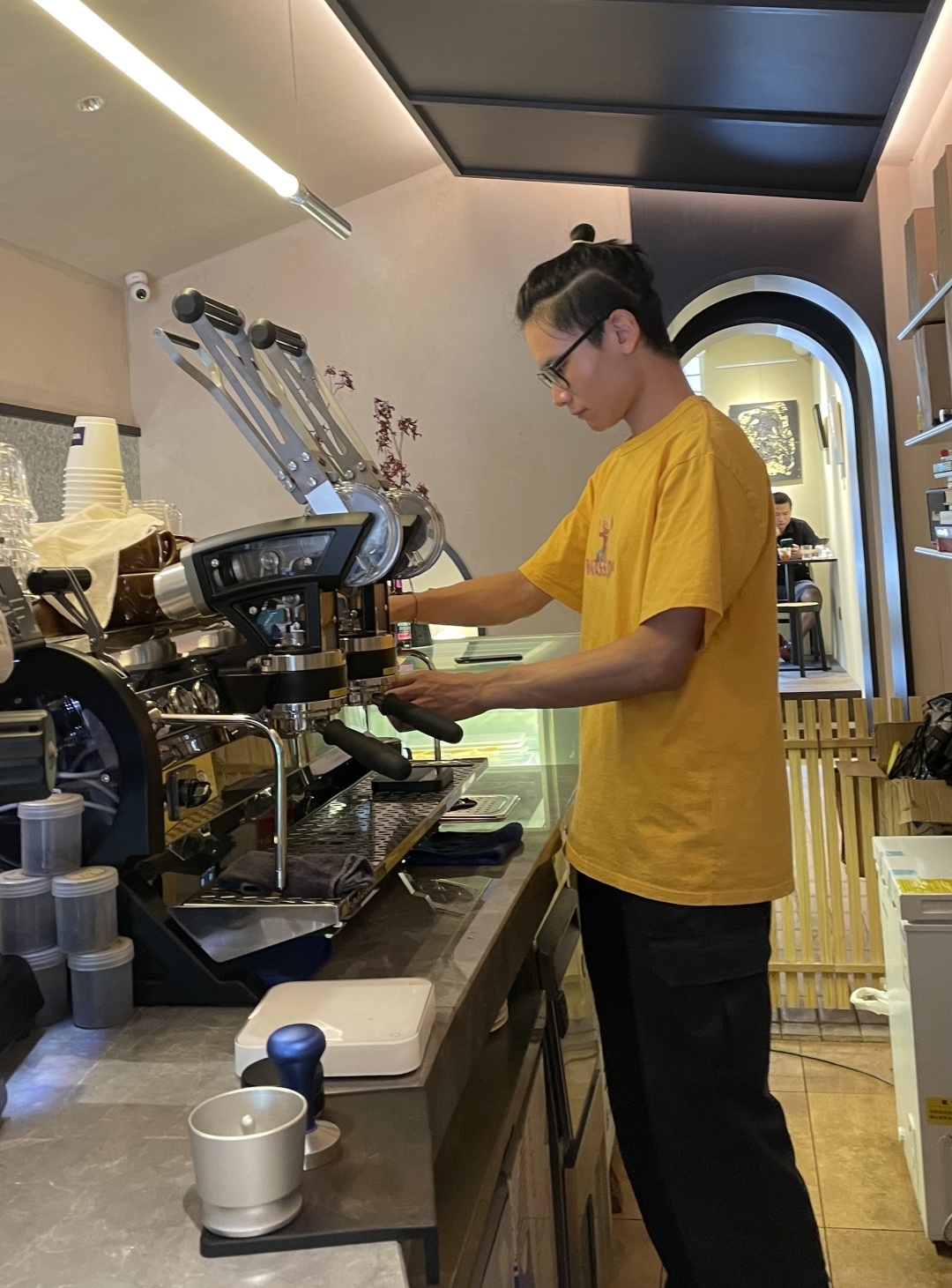 Aries 开在玉林背街的小巷里,夹在缝纫店与商行之间,门头朴素简洁,空间狭小,3人在内已觉拥挤,但只要坐于吧台,懂行的人即刻便知操作台上的设备和器具价值几何。