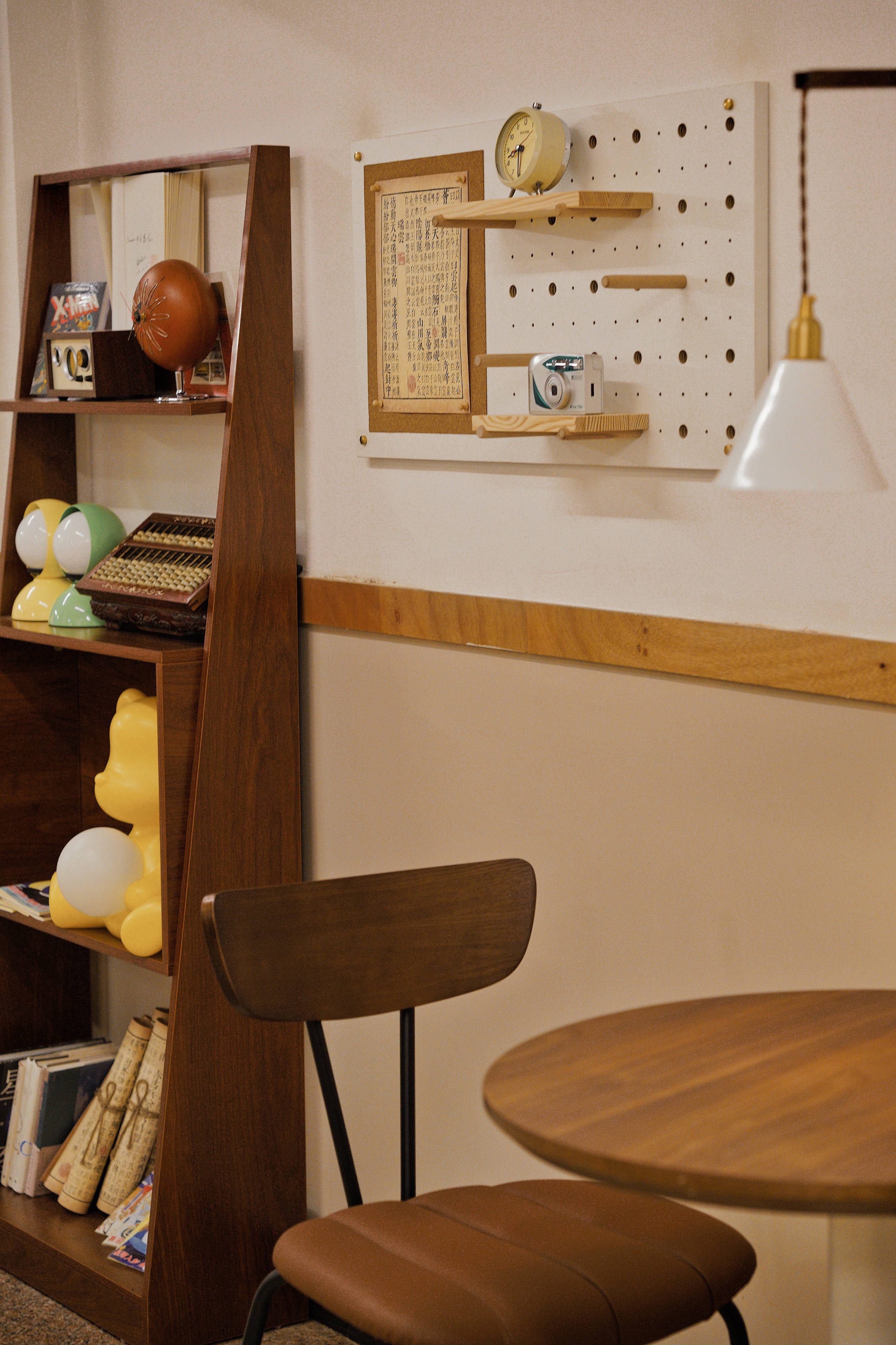 飞碟灯、手绘卡片、拉绳CD播放器,Marimekko的马克杯见缝插针,软装怪趣有品,多却不杂乱,一起营造放松氛围。