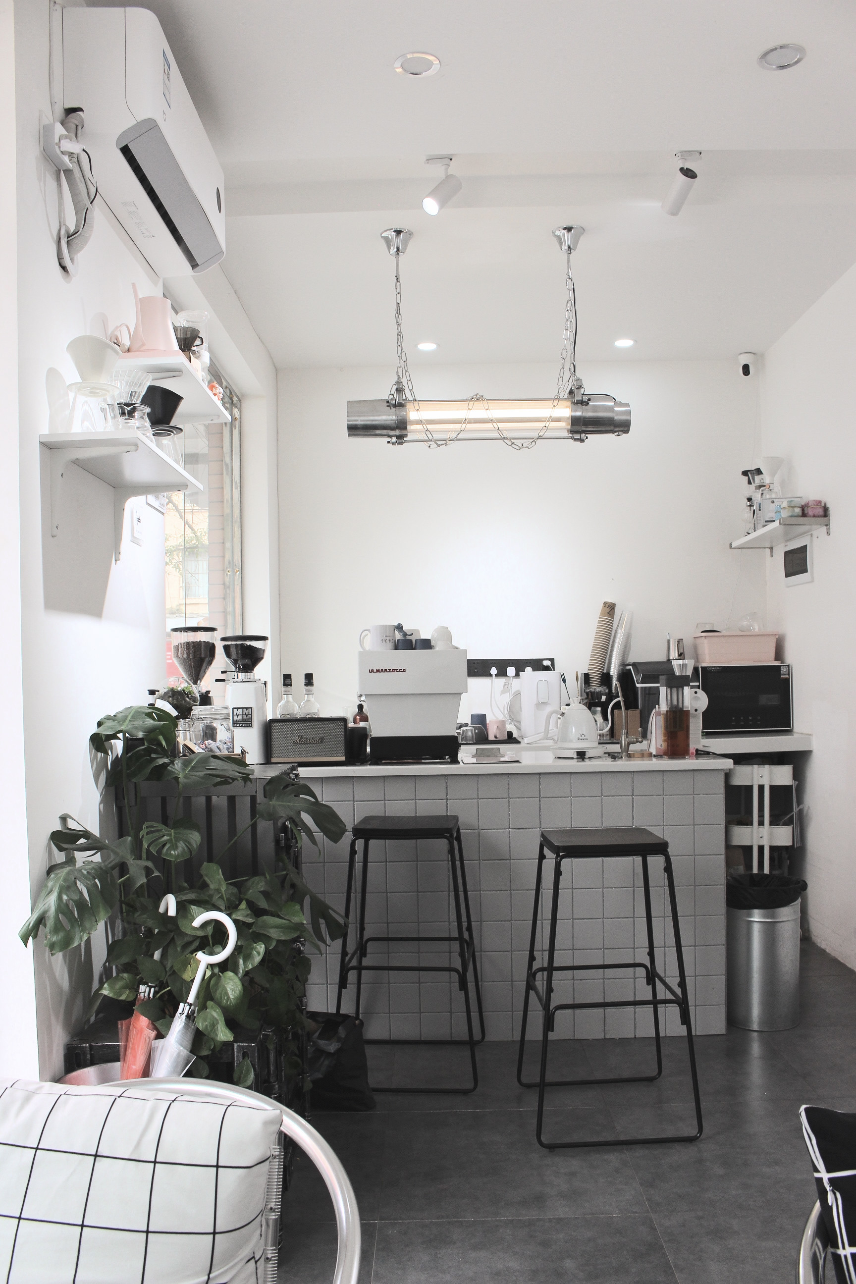 为了能更好的和客人交流,SLO特意采取双吧台设计,高脚凳一座,仿佛在家里喝咖啡。