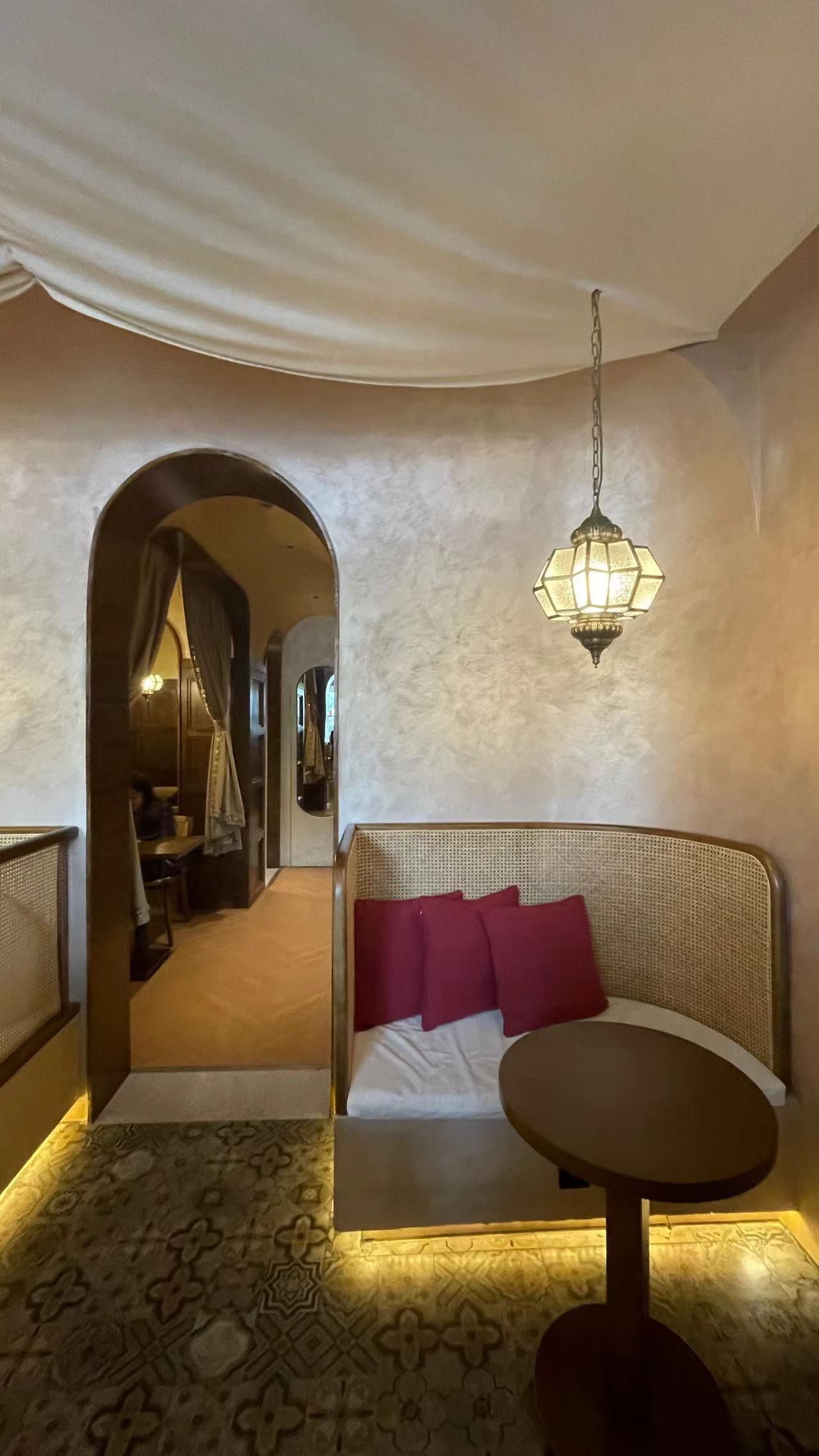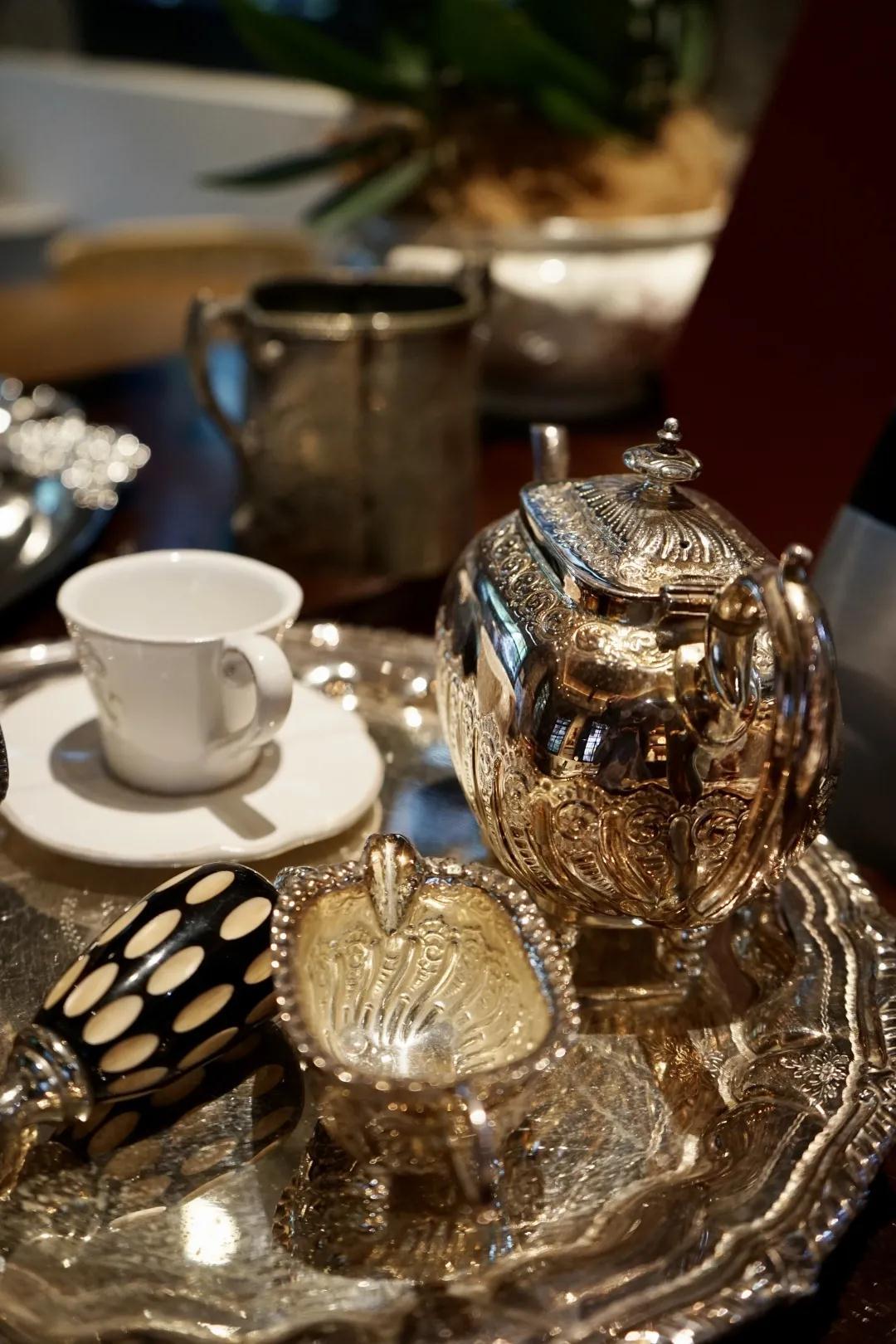 青砖、高顶木梁、枝形吊灯、拜占庭窗棂、厅长桌台上的《造洋饭书》、古董钟表与白瓷盘、院里的历史与院外的现世形成的对持,将咖啡馆的古典静穆烘托地无以复加,这些装饰在别处可能就是装饰,在此处则是经时光之手打磨出的妥帖。