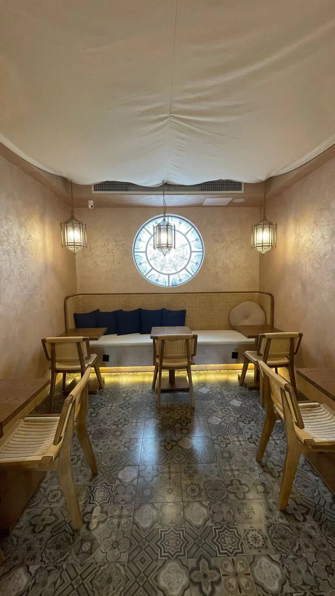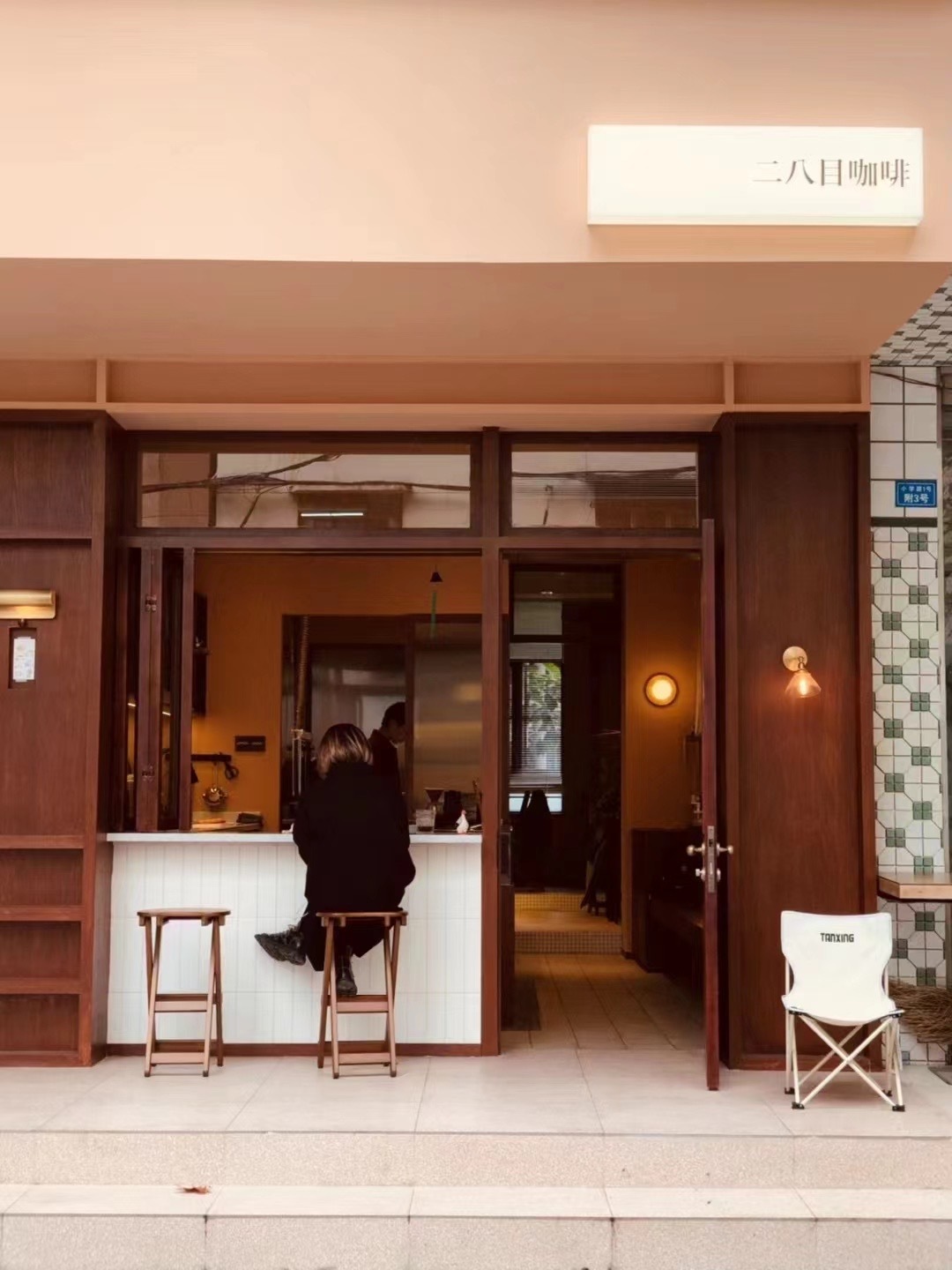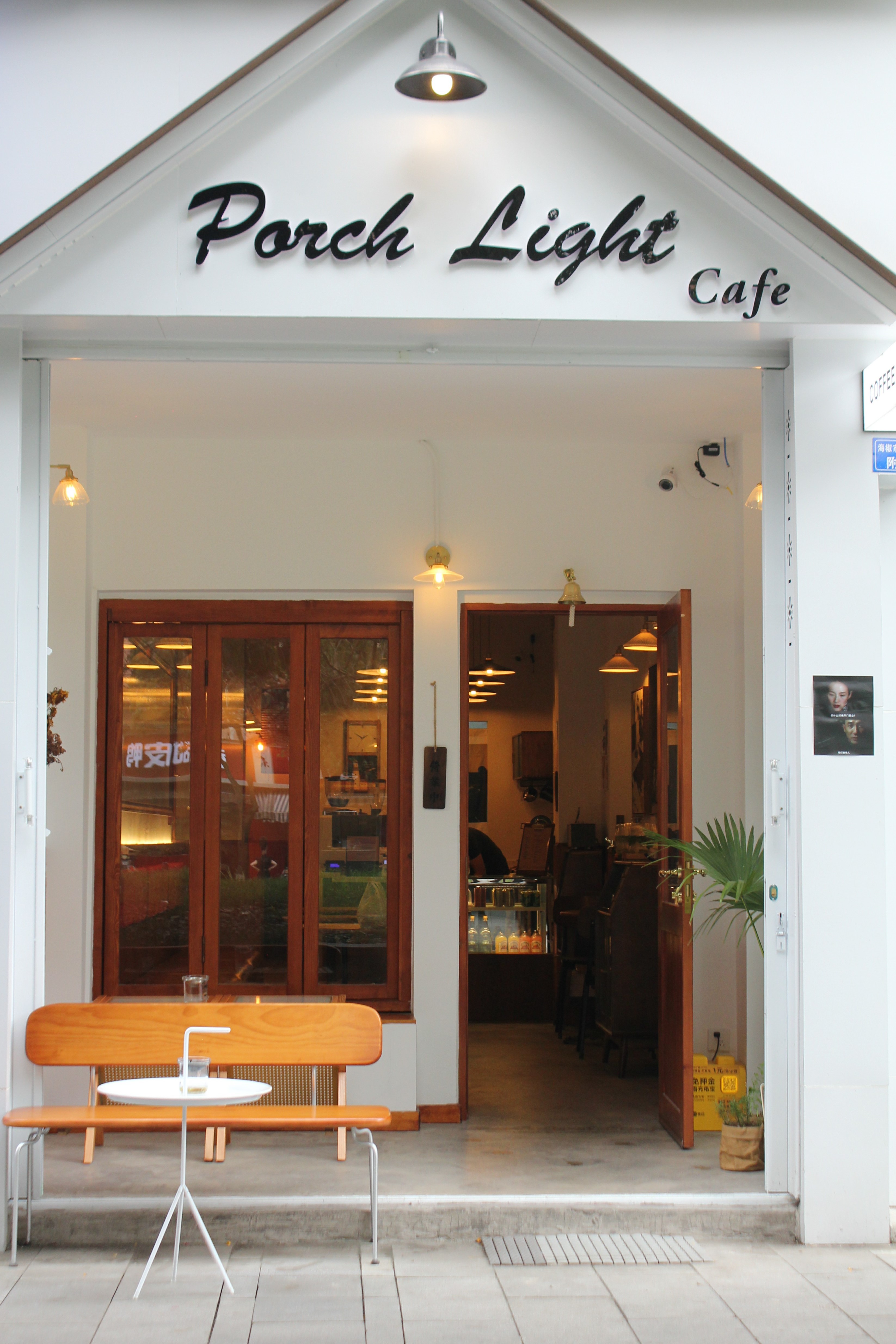 粉刷得明亮,让这间小屋区别于道路两边的老店,斜面屋檐、暖黄灯光、老式玻璃框,又保留了一些本土气息。