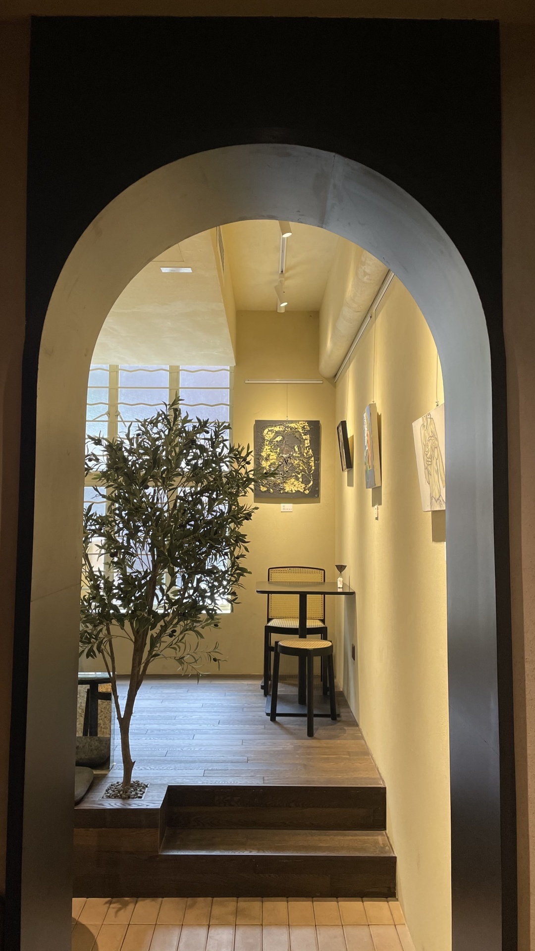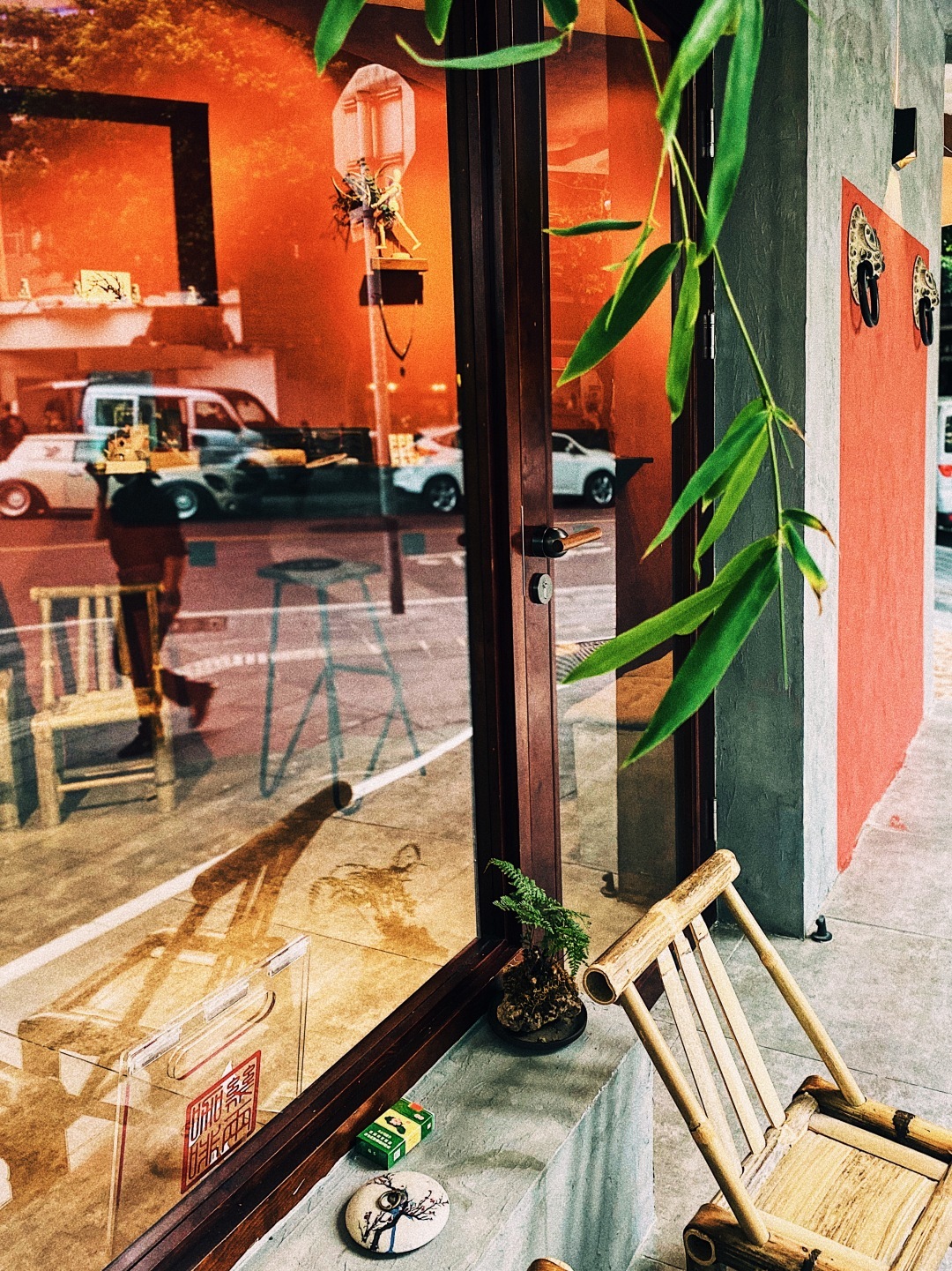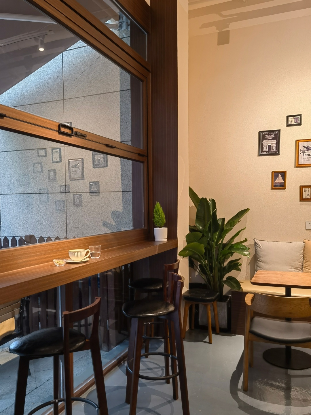 粉刷得明亮,让这间小屋区别于道路两边的老店,斜面屋檐、暖黄灯光、老式玻璃框,又保留了一些本土气息。